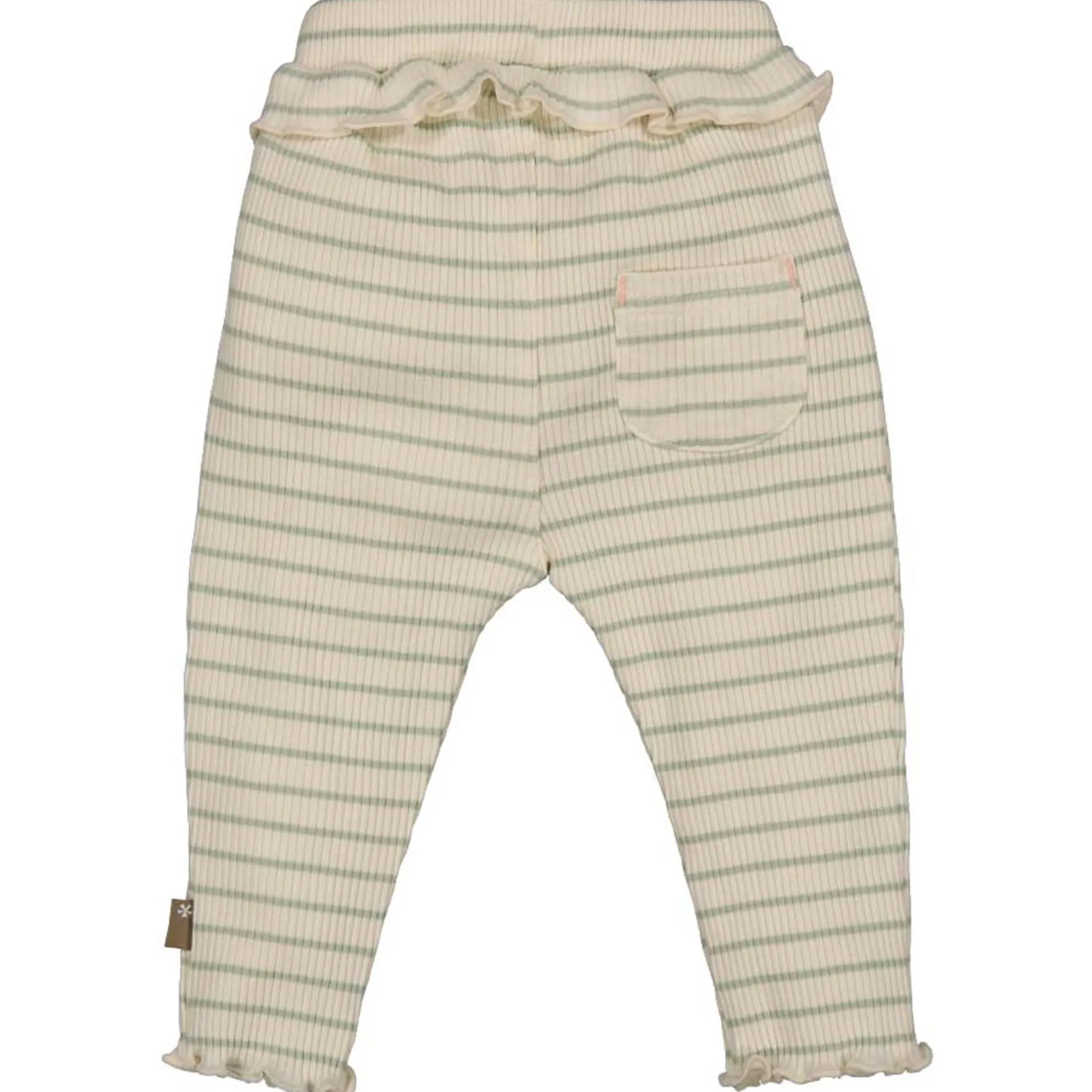 Deze Bess legging is gemaakt van een fijne katoen rib kwaliteit. Deze legging heeft een aangesloten pasvorm met een elastische boord met strikdetail aan de bovenkant waardoor deze makkelijk aan en uit te doen is bij uw kindje met daaronder een ruffle. Deze legging is voorzien van een strepen print en is goed te combineren met de rest van de Bess collectie bij Prénatal. Verkrijgbaar in de maten 56 t/m 80. Kwaliteit: 95% katoen, 5% elastaan. Binnenstebuiten wassen op 40 graden met gelijke kleuren.
