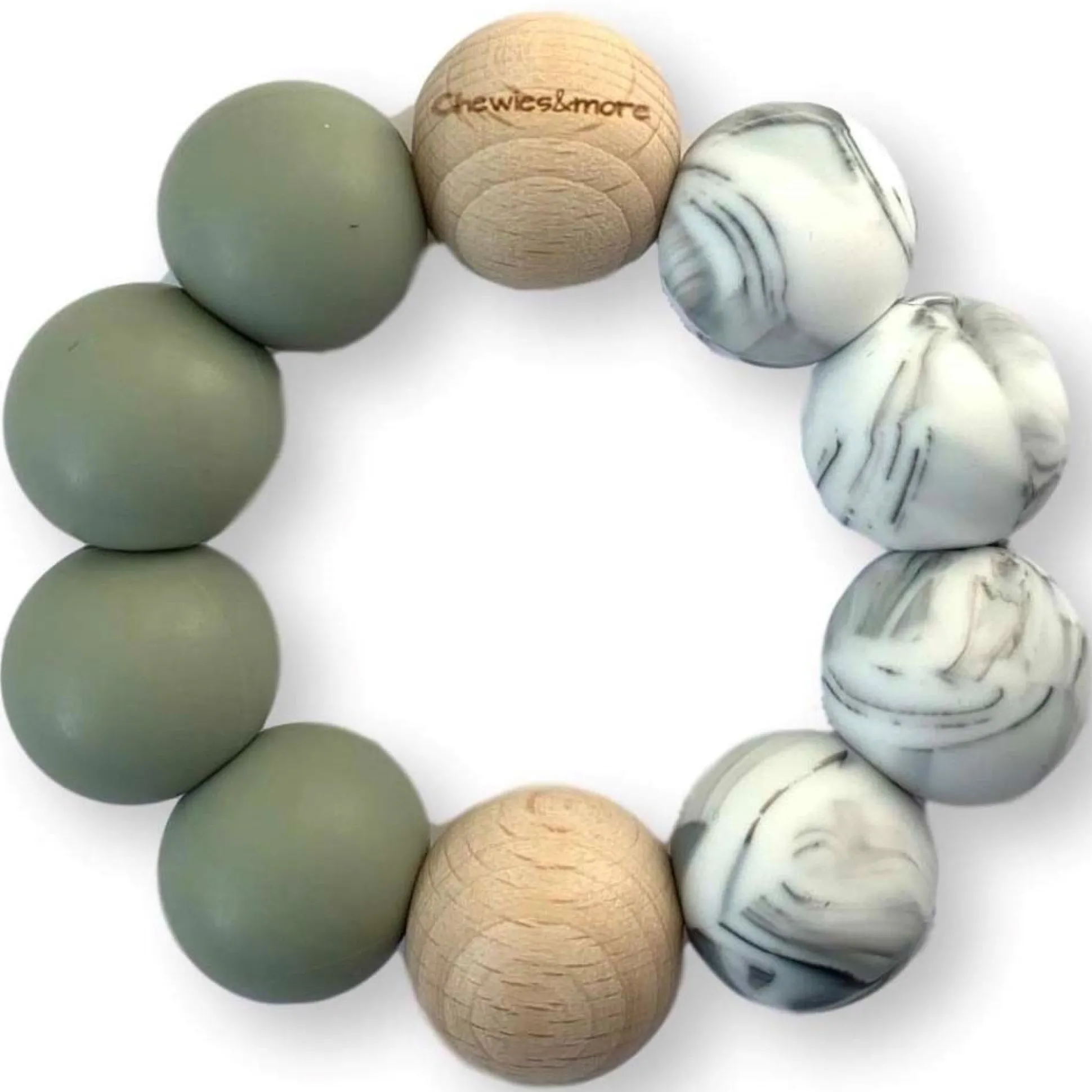 De basic chewie van Chewies&more zijn makkelijk vast te houden door jouw kleintje dankzij het ronde formaat. De contrasten en de verschillende kleuren maken het interessant voor je kindje. De chewie masseert het gevoelige tandvlees en verzacht de pijn bij doorkomende tandjes. De kralen zijn gemaakt van 100% siliconen en organisch beukenhout. Het beukenhout heeft een uitstekende antibacteriele werking en doordat de siliconen kralen volledig recyclebaar zijn heeft het een lange levensduur. Het formaat is ongeveer 7,5 cm. De chewie is in verschillende kleuren verkrijgbaar. De siliconen kralen kunnen met water en mild sopje worden afgenomen. De houten kralen kan je afnemen met een vochtige doek en aan de lucht laten drogen. Je kan de chewie niet uitkoken, in de sterilisator of vaatwasser plaatsen.