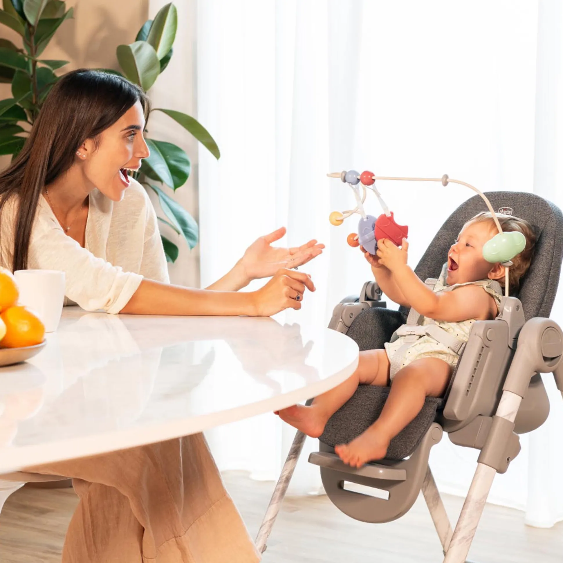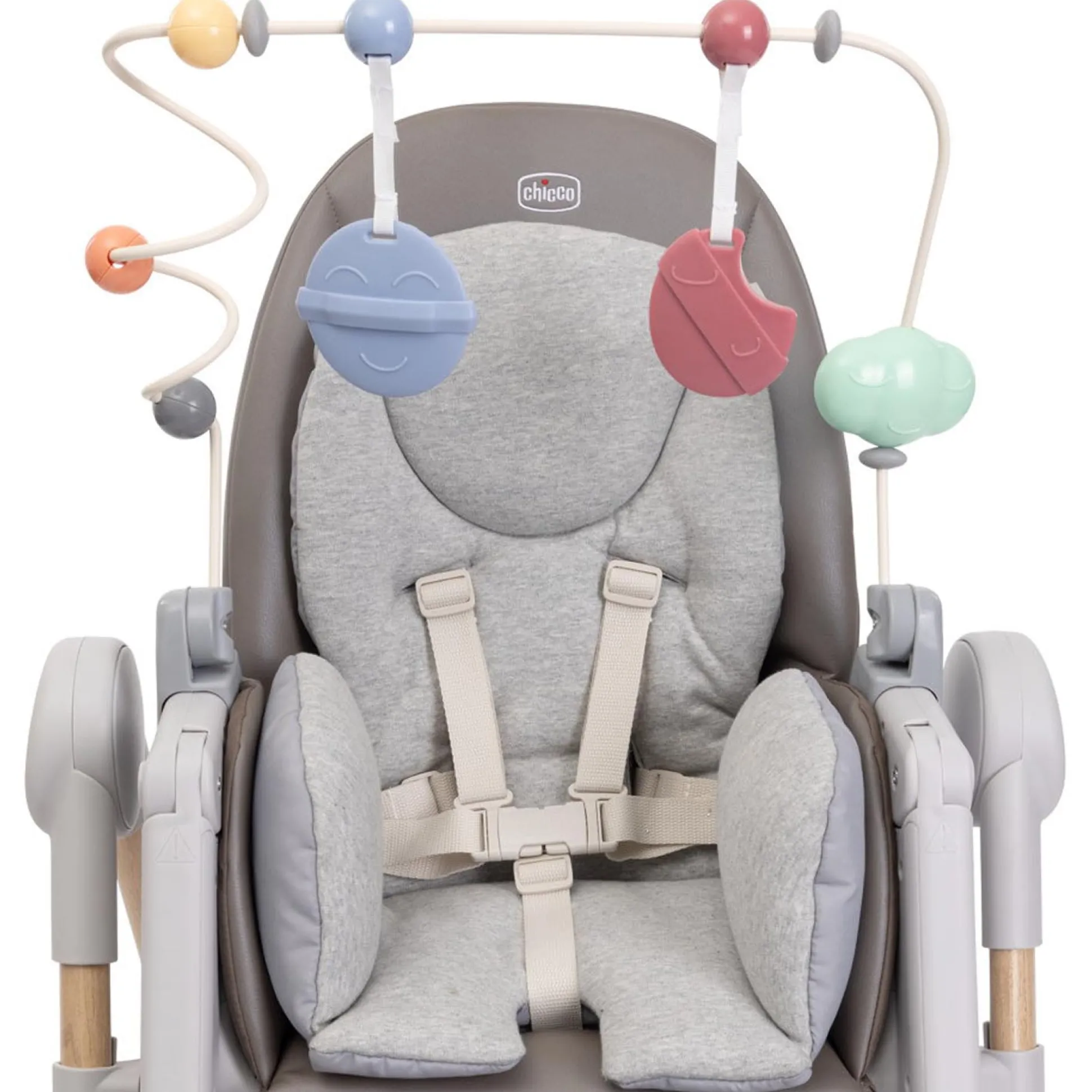 De Chicco Polly Armonia Speelboog is de perfecte toevoeging aan de Chicco Polly Armonia kinderstoel, ontworpen om het plezier en de betrokkenheid van je baby te vergroten. Met zijn zachte kleuren en schattige regenboogthema is deze speelboog niet alleen visueel aantrekkelijk, maar ook stimulerend voor de zintuigen en de fijne motoriek van je kleintje.De speelboog is voorzien van meerdere kleurrijke en interactieve speeltjes die je baby urenlang vermaak en ontdekking bieden. De zachte figuren en hangende elementen moedigen je baby aan om te grijpen, voelen en ontdekken, wat de ontwikkeling van de hand-oogcoördinatie bevordert.De Chicco Polly Armonia Speelboog is eenvoudig te bevestigen aan de kinderstoel en past perfect bij het ontwerp van de Polly Armonia. De boog kan eenvoudig worden verwijderd wanneer deze niet in gebruik is, zodat de kinderstoel veelzijdig blijft in zijn gebruik.
