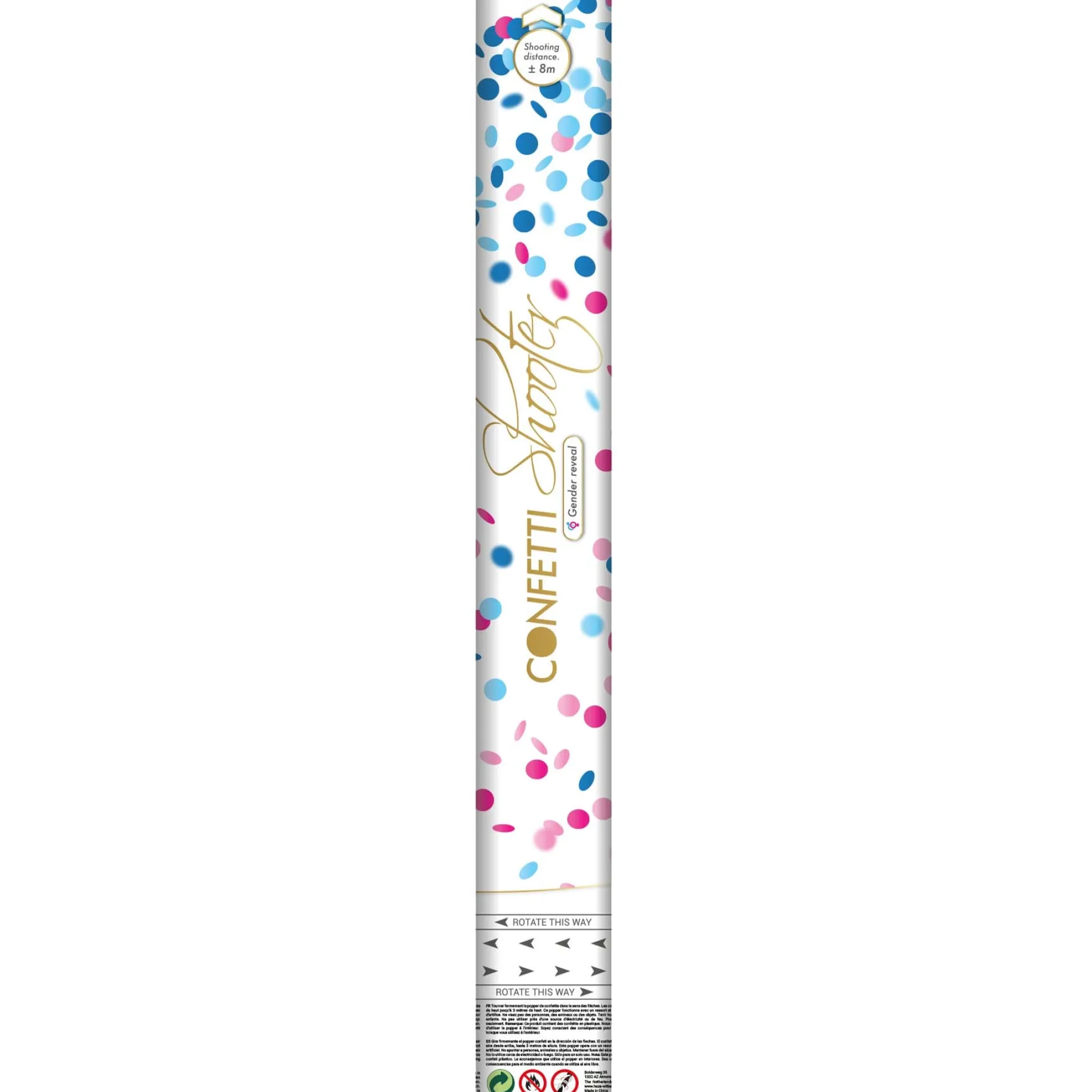 Deze confeti kanon maakt jou gender reveal (party) helemaal compleet. Gebruik de confetti shooter om het geslacht van je kindje te onthullen. Aan de buitenkant van de kanon kun je niet zien of er roze op blauwe confetti inzit. Wel zit er aan de onderkant een klein stickertje met de kleur roze. Deze kan verwijderd worden zodat het geslacht van je kindje geheim blijft tot dat jij dit wilt. Beschikbaar in de kleuren roze en blauw.