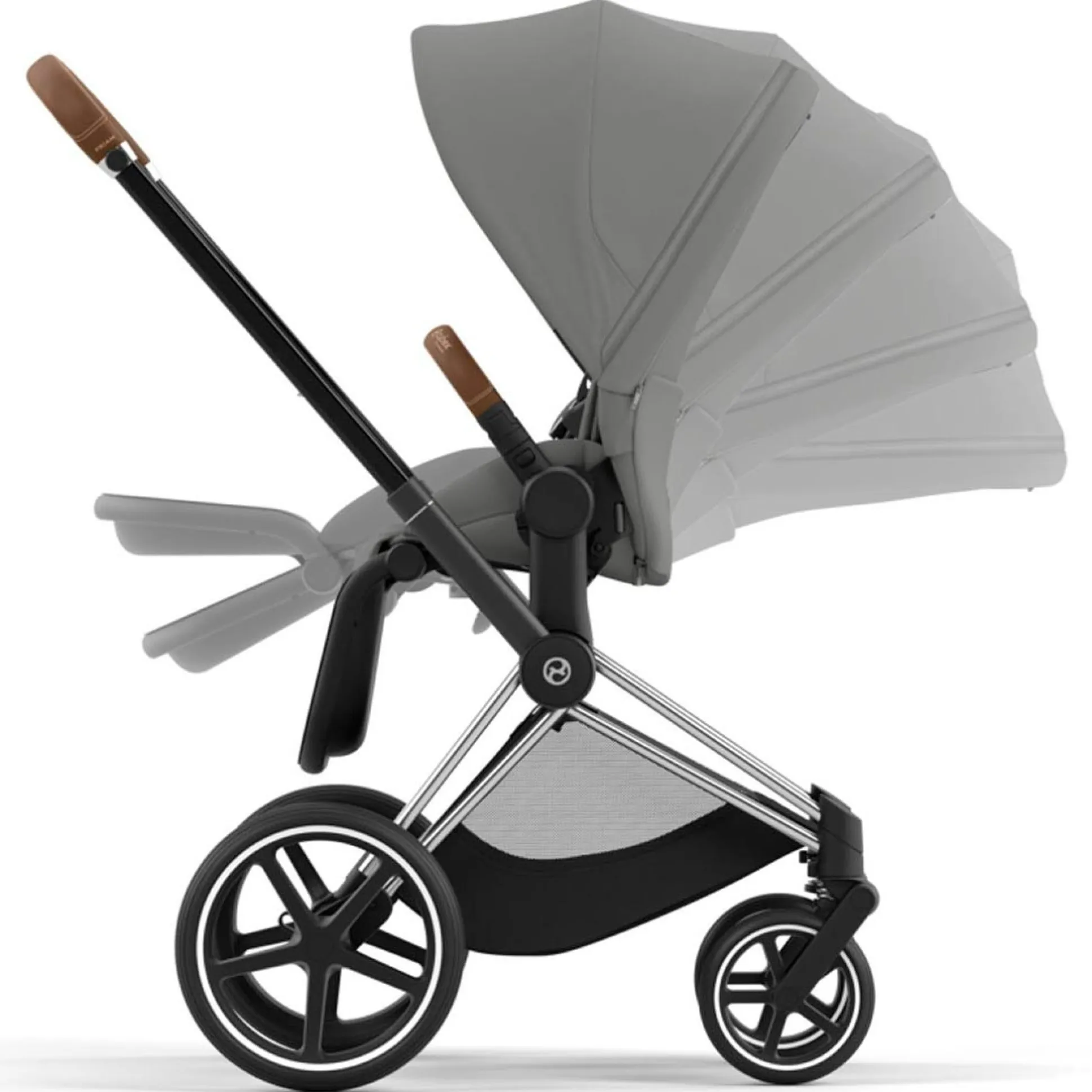 Cybex Priam4 compleet Chrome met bruine handvatten Mirage Grey