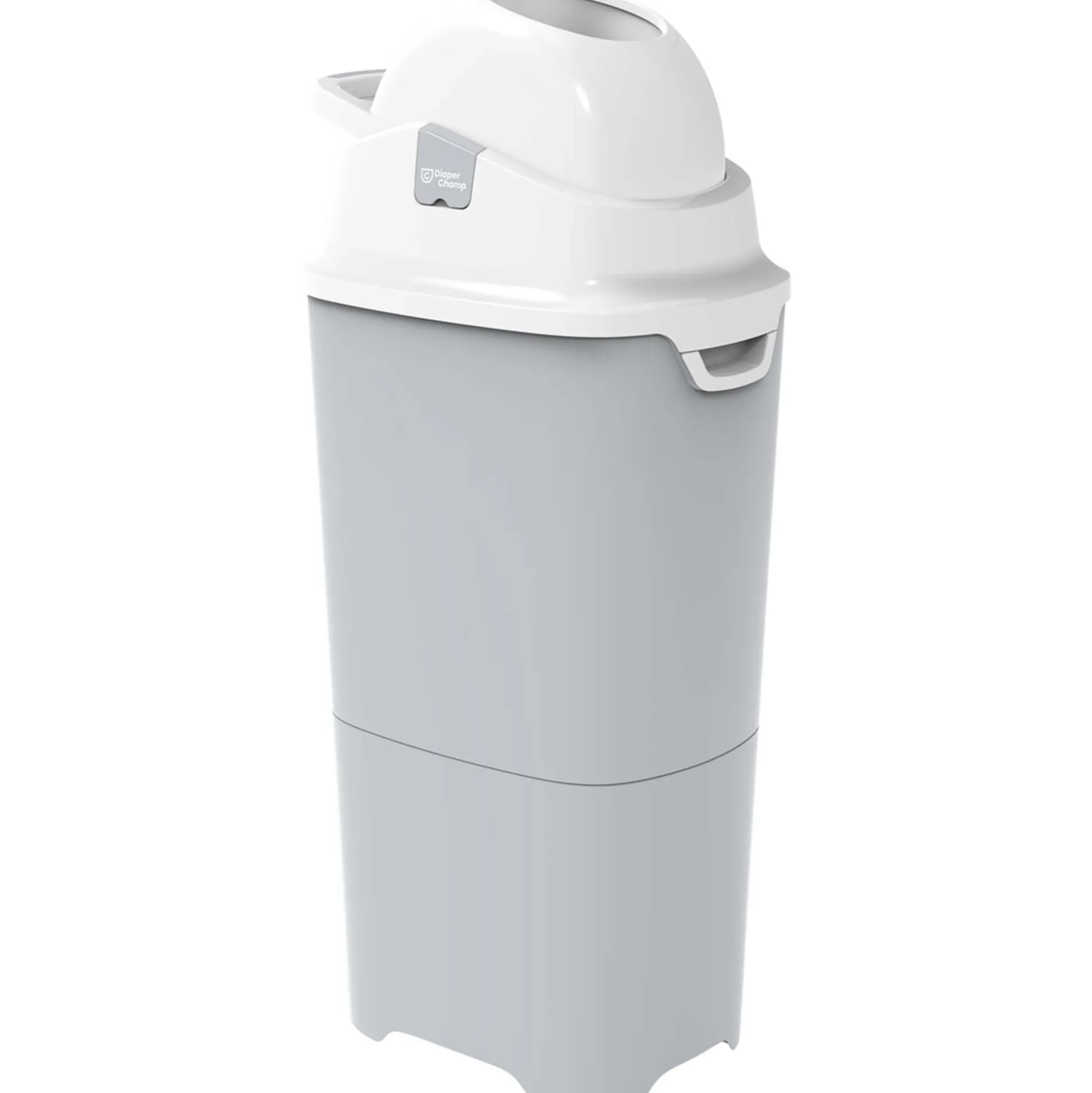 Met de DiaperChamp One Maxi gooi je luiers reukloos weg en bespaar je geld. Vanwege het unieke en gepatenteerde klapmechanisme in de deksel, is de luier met een enkele beweging weggegooid en heb je geen last van eventuele luchtjes. De luieremmer is 83cm hoog en biedt ongeveer ruimte om 65 luiers in te gooien. De emmer is grijs/zilver van kleur met een witte deksel. Je kan elke zak als vuilniszak gebruiken, (eco) plastic of liever katoen als je dat graag gebruikt!