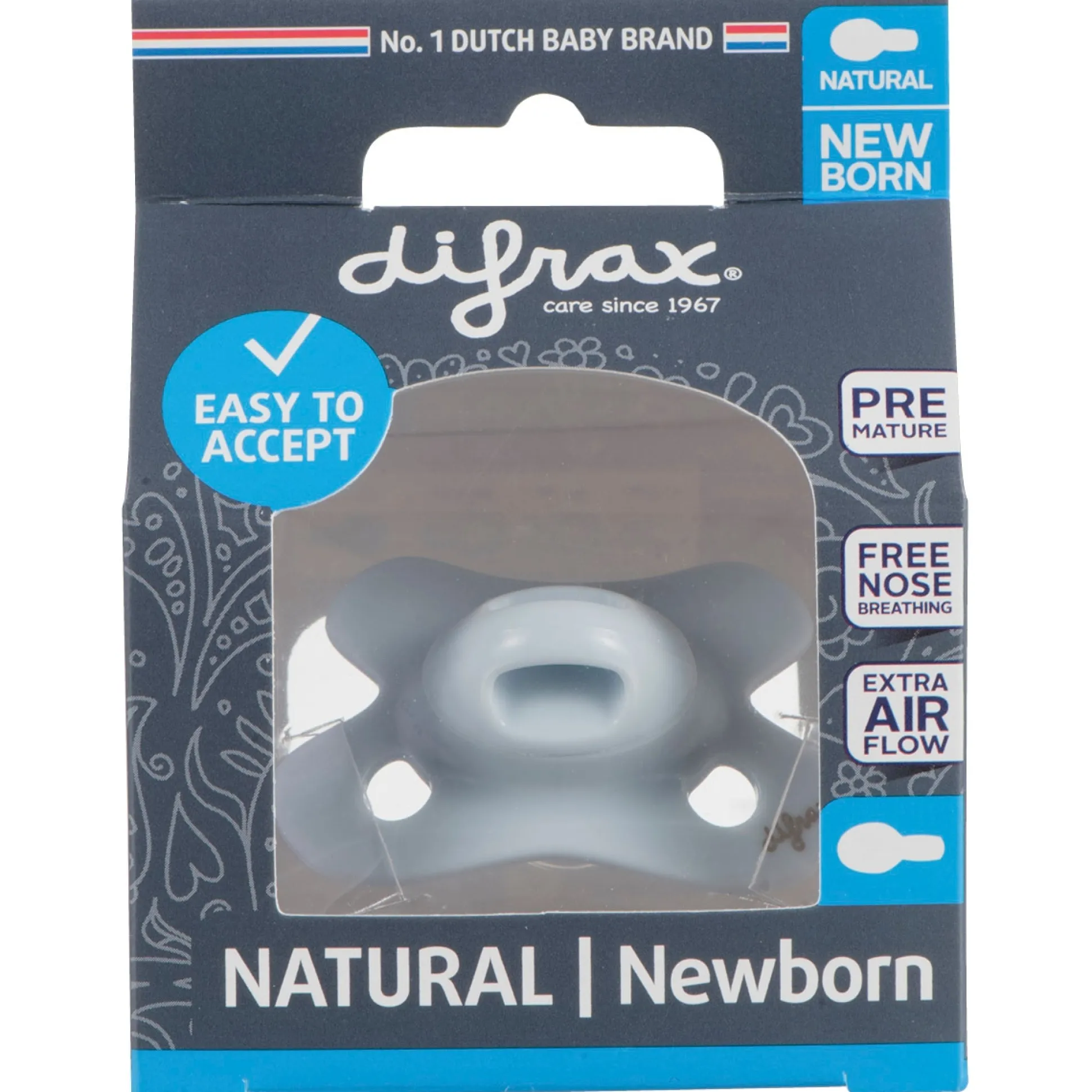 De Difrax fopspeen natural voldoet aan de zuigbehoefte van je kleintje. De fopspeen is symmetrisch wat je baby snel herkent en makkelijker zal accepteren. De grootte van het fopspeen schildje en die van het zuiggedeelte zijn speciaal ontwikkeld voor pasgeboren en premature baby’s. De vlindervorm laat het neusje vrij en voorkomt huidirritatie vanwege optimale luchttoevoer. De fopspeen is ontwikkeld door het Difrax medisch team.