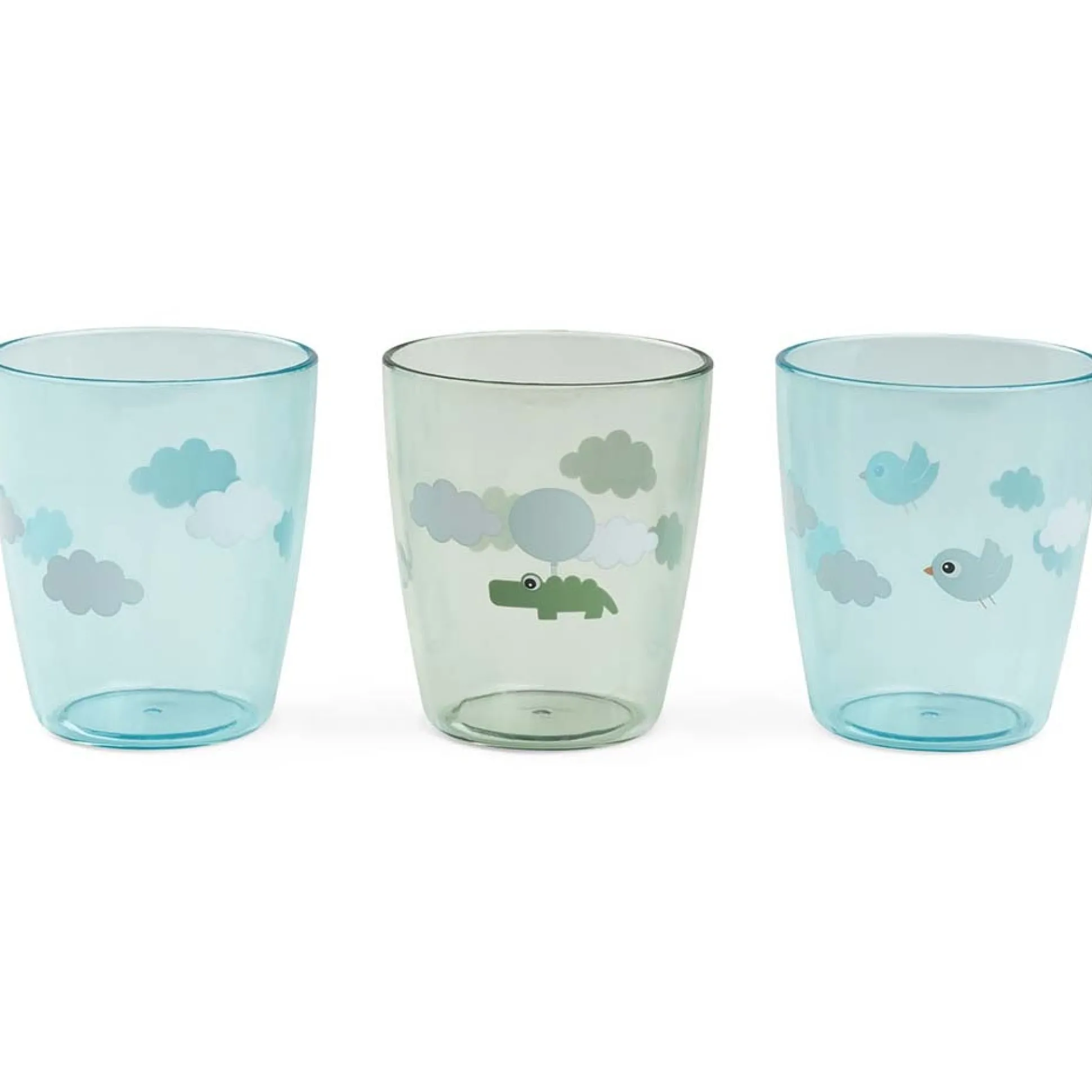 Het miniglas is ontworpen voor kleine handjes. Met drie drinkglazen in deze set staat er altijd een glas klaar voor alle maaltijden van de dag. Het glas is transparant en de vrolijke wolkjes zijn te zien door de heldere beker en het water. De bekers zijn geschikt voor de vaatwasser (max. 70 graden), maar mogen niet in de magnetron.