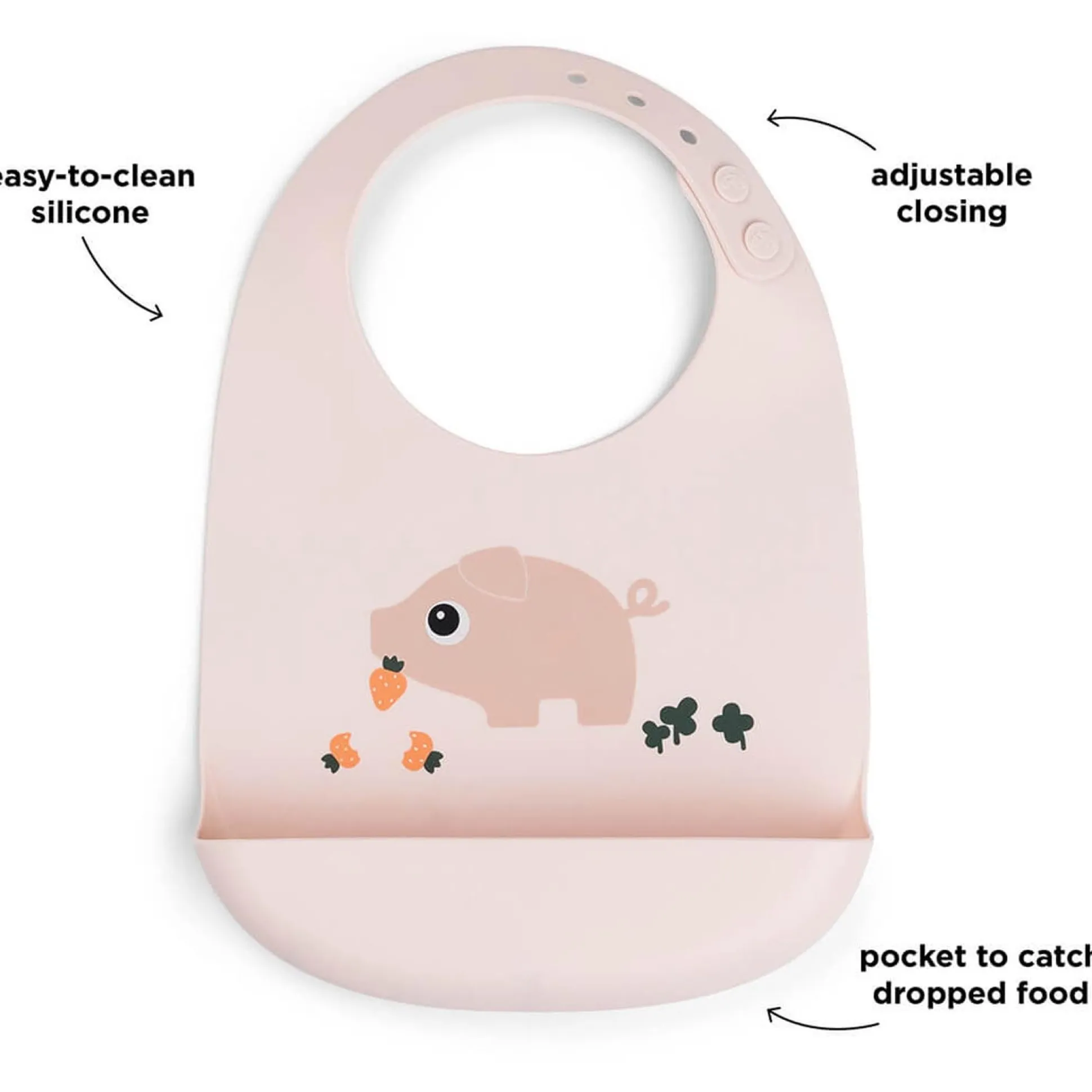 Maak etenstijd makkelijker en netjes met deze vrolijke silliconen slab van Done by Deer. Deze praktische slab is ontworpen met handig opvangbakje om gemorst eten op te vangen. Verkrijgbaar in verschillende kleuren en designs. De slab is gemaakt van zacht en flexibel BPA-vrij siliconen en voelt comfortabel aan voor je kindje. Dankzij de verstelbare drukknoopsluiting past hij altijd goed en groeit hij mee. Het waterafstotende materiaal is eenvoudig schoon te maken: afnemen met een doekje, afspoelen onder de kraan of in de vaatwasser. Afmeting: 27 x 19 x 4cm.