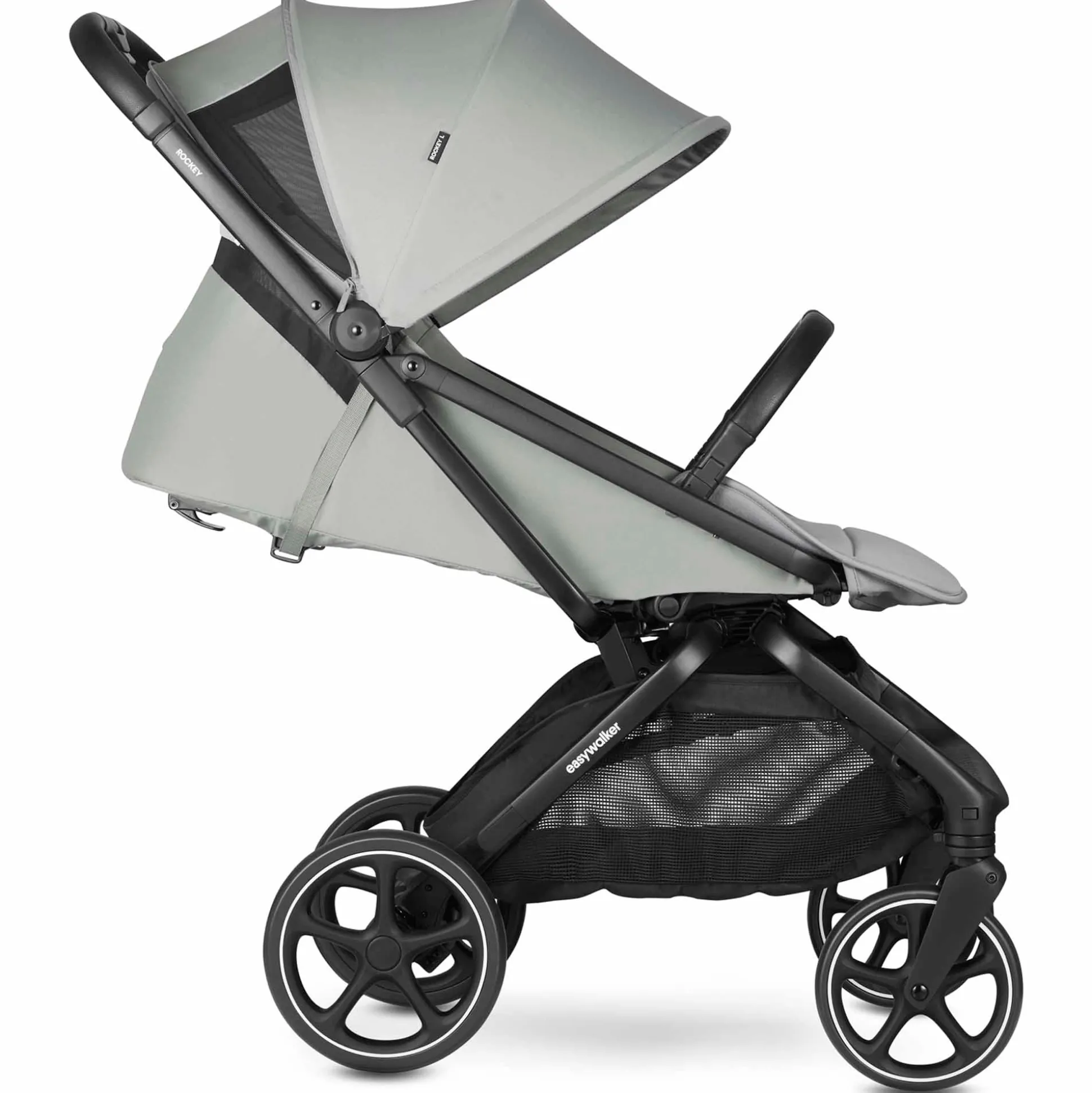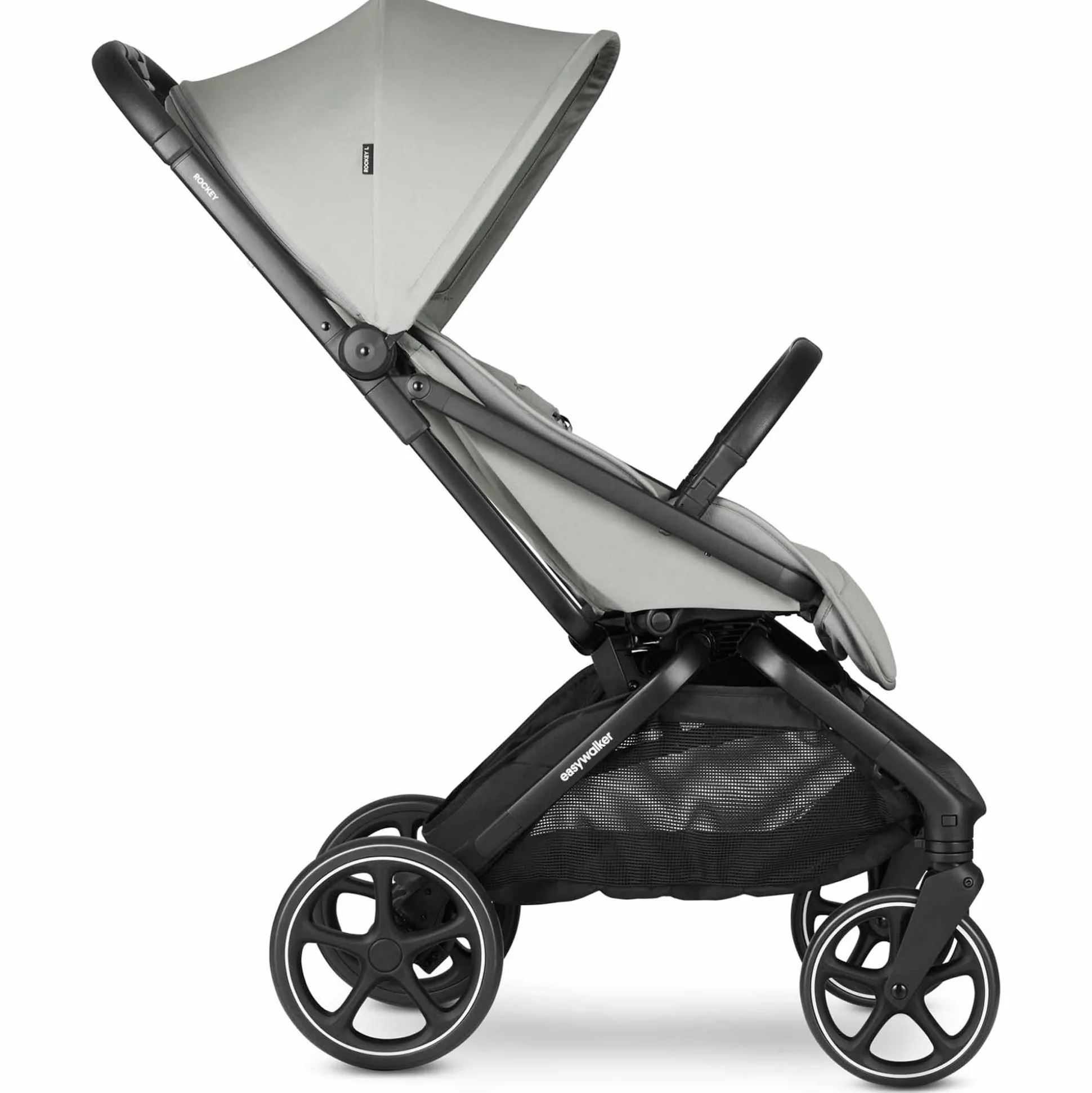 Met zijn 9 kg de grootste Rockey, met de grootste wielen, een heerlijk grote zitting en een ruime boodschappenmand. Hij is praktisch en toch compact, vouwt automatisch op en ontvouwt gemakkelijk met een hand en de duwstang is verstelbaar. Je zult er dus met plezier mee door de stad en in het bos wandelen. Deze uitvoering is uitgevoerd met de grootste wielen. Alle Rockey L zijn compatibel met de reiswieg, je kunt ze vanaf de eerste dag gebruiken! De reiswieg is hetzelfde voor alle Rockey maten.
