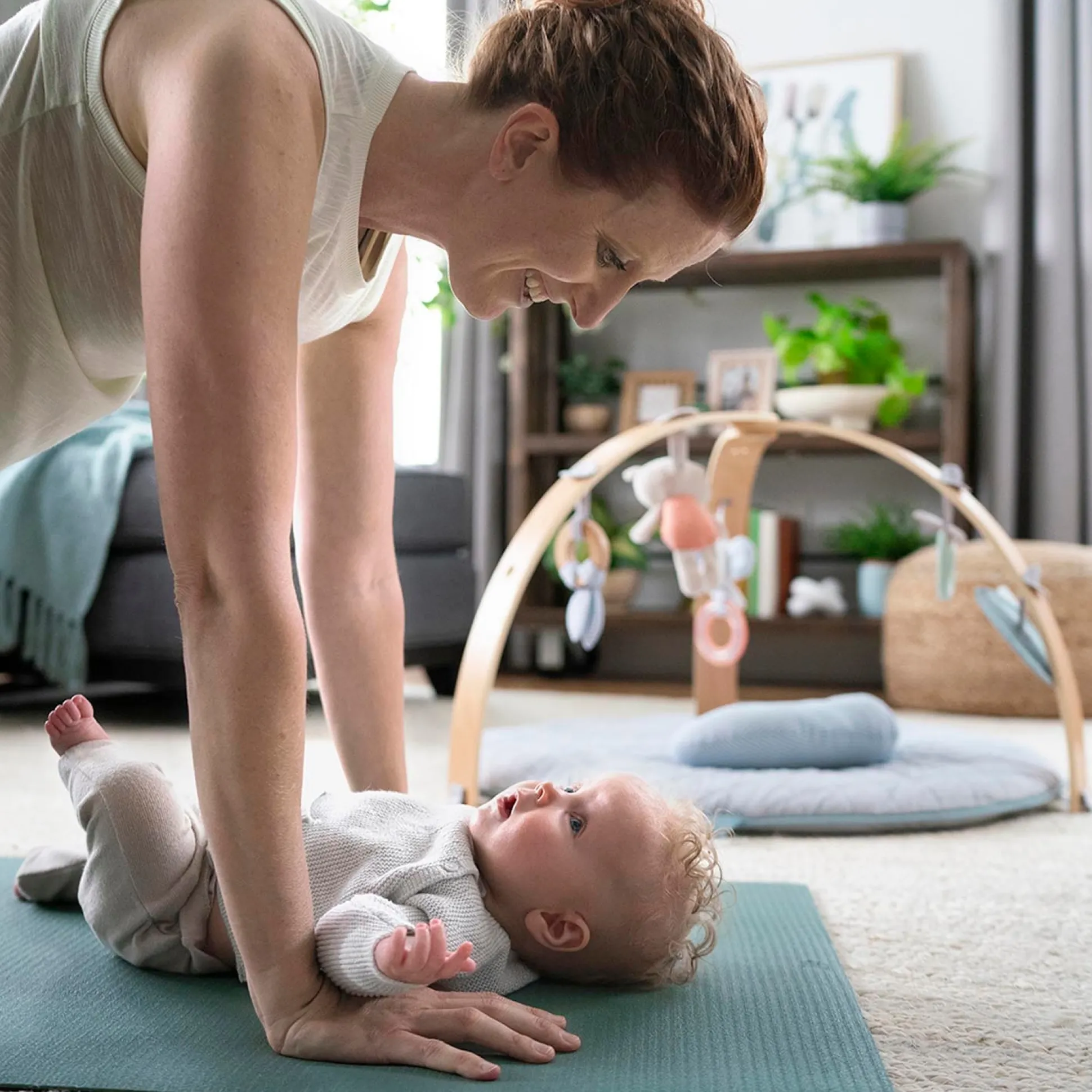 Geef je baby een zachte, veilige en stijlvolle plek om te spelen met het Bright Starts speelkleed. Dit baby speelkleed voelt heerlijk comfortabel aan, bijna alsof je kleintje op een wolk ligt. De houten speelboog is voorzien van een veilig spiegeltje, bijtring, buikkussen en knuffeltje, allemaal afneembaar en ook los te gebruiken, bijvoorbeeld onderweg. Het omkeerbare speelkleed groeit mee met elke fase van ontdekken en ontspannen. Dankzij het slimme design vouw je het eenvoudig dubbel tot een handige draagtas met handgrepen. Ideaal om overal mee naartoe te nemen: van de woonkamer tot het park. Zo wordt spelen, ontdekken en samen genieten nóg makkelijker, elke dag opnieuw.