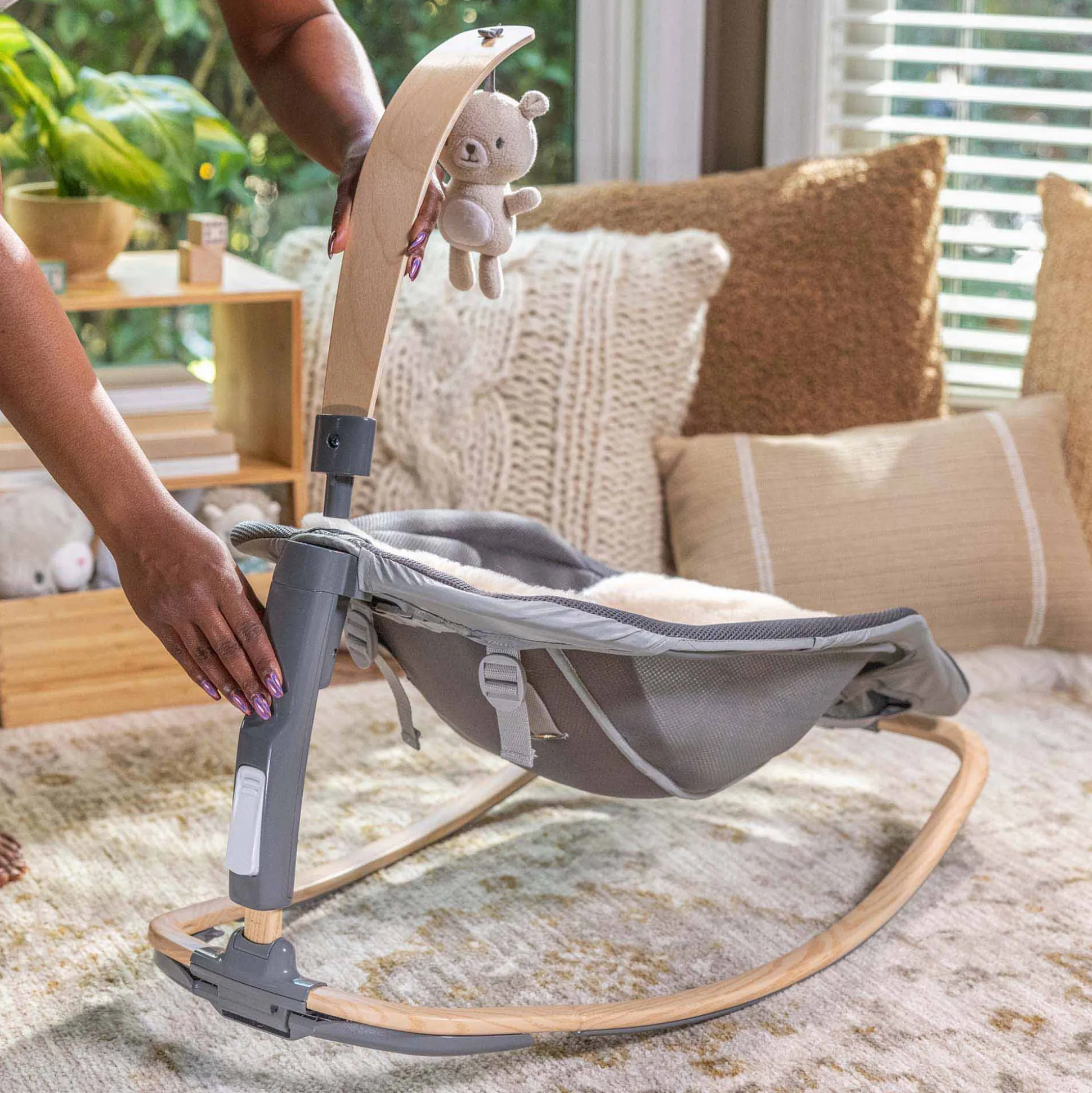 Het innovatieve Ingenuity Every Season™ schommelzitje met Air Flow-technologie zorgt ervoor dat jouw kindje altijd en overal comfortabel zit. De extra knusse lamswol is 100% natuurlijk en afkomstig uit Australië. Bovendien is dit schommelzitje extra praktisch omdat het kan worden omgebouwd tot een vast zitje, het groeit dus met je kindje mee. De afneembare speelgoedstang is gemaakt van hout uit een duurzaam bos. Deze bevat een afneembaar zacht pluchen berenspeeltje en een houten ringspeeltje aan een T-riempje. Het zitje is voorzien van zachte muziek en geruststellende geluiden en trilt zachtjes om jouw kindje te sussen. Voor het geluid en de trilfunctie zijn 3 C alkalinebatterijen nodig (deze worden niet meegeleverd). Dankzij ons SlimFold™-design kan het schommelzitje plat worden opgevouwen voor eenvoudig opbergen en meenemen. Het zitje is gemaakt voor kindjes van 0-30 maanden of tot 18 kg.