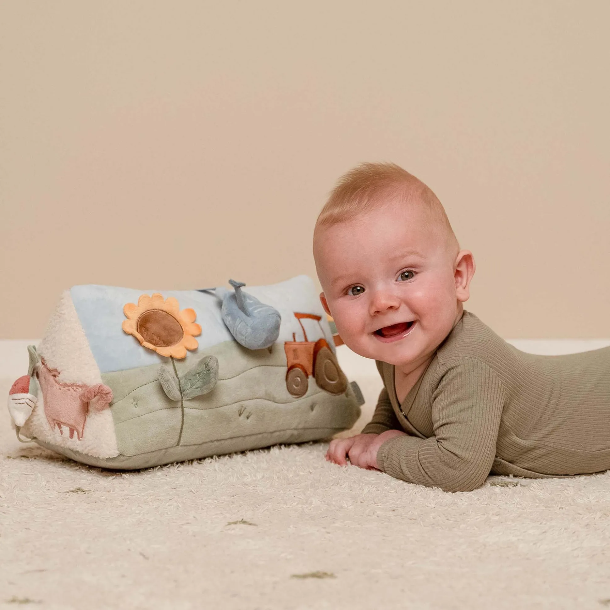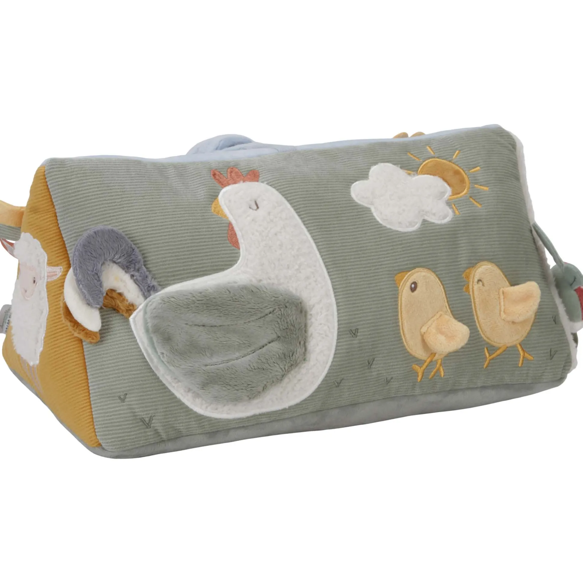 Deze activiteitendriehoek van het merk Little Dutch komt uit de collectie Little Farm. Deze veelzijdige activiteiten driehoek neemt kleine kinderen mee op avontuur terwijl ze op hun buik liggen. Onderweg valt er veel te ontdekken. Van knisperende vleugels van de kip tot aan een spiegeltje en een rammelende gieter. Het product heeft speelse functies en leuke texturen die de zintuigen en verbeeldingskracht van je baby prikkelen. Afmeting 35x19x20 cm. Minimum leeftijd 0+ maanden. Wasvoorschrift wasmachine 30 graden.