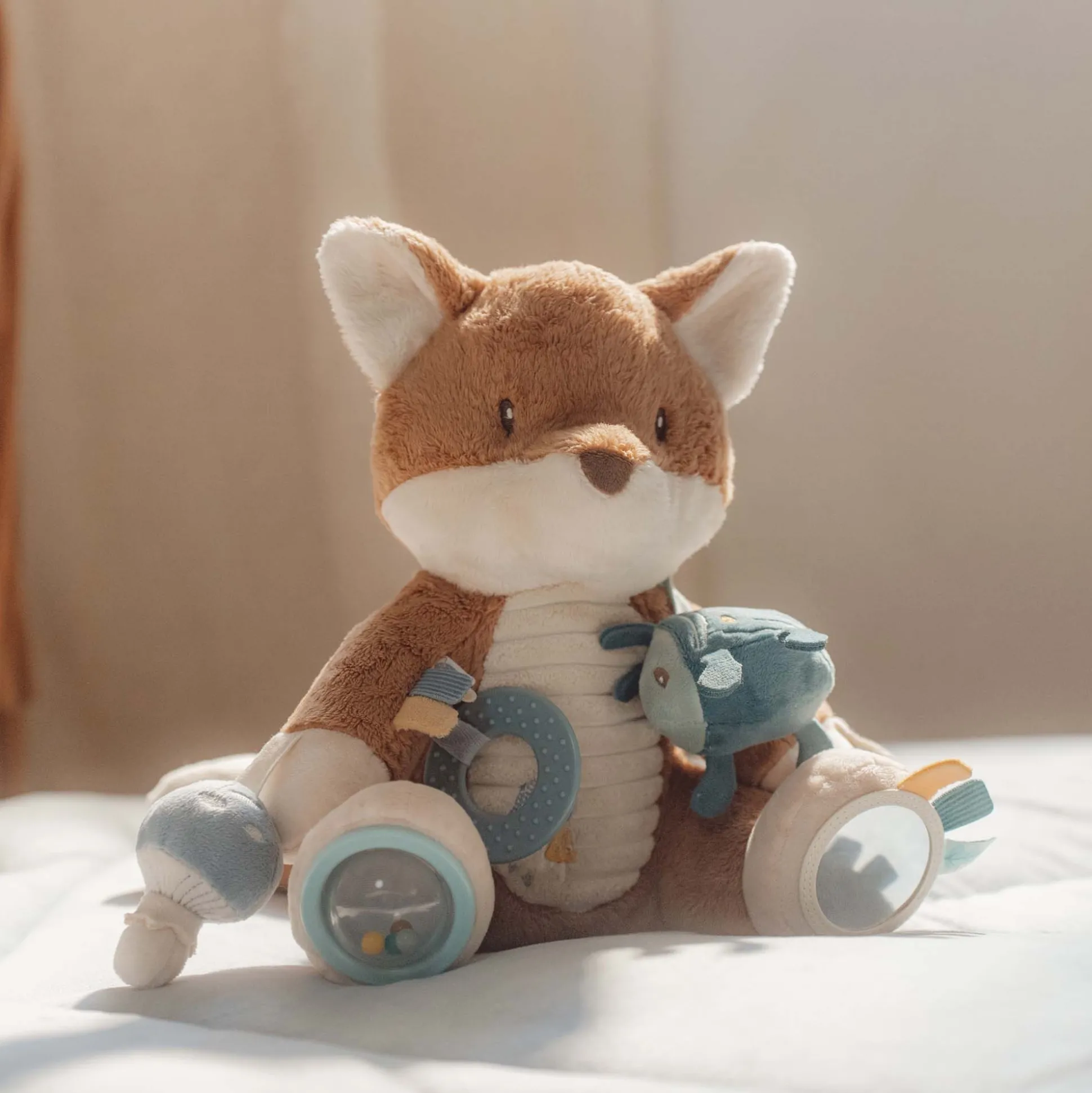 Knuffel en speel! Dit lieve vosje van Little Dutch belooft meer dan alleen maar knuffels. Ontdek alle activiteiten die het verbergt. Het ratelende geluid, de knisperende kever op de schouder, en labels, een eikeltje en paddenstoel om mee te friemelen. De ringen om het pootje, de spiegel onder één voetje – zoveel details om de nieuwsgierigheid van je kleintje te stimuleren. En na al dat spelen, inspireert het schattige vosje de zoetste dromen over het betoverende bos waar Forest Friends spelen.