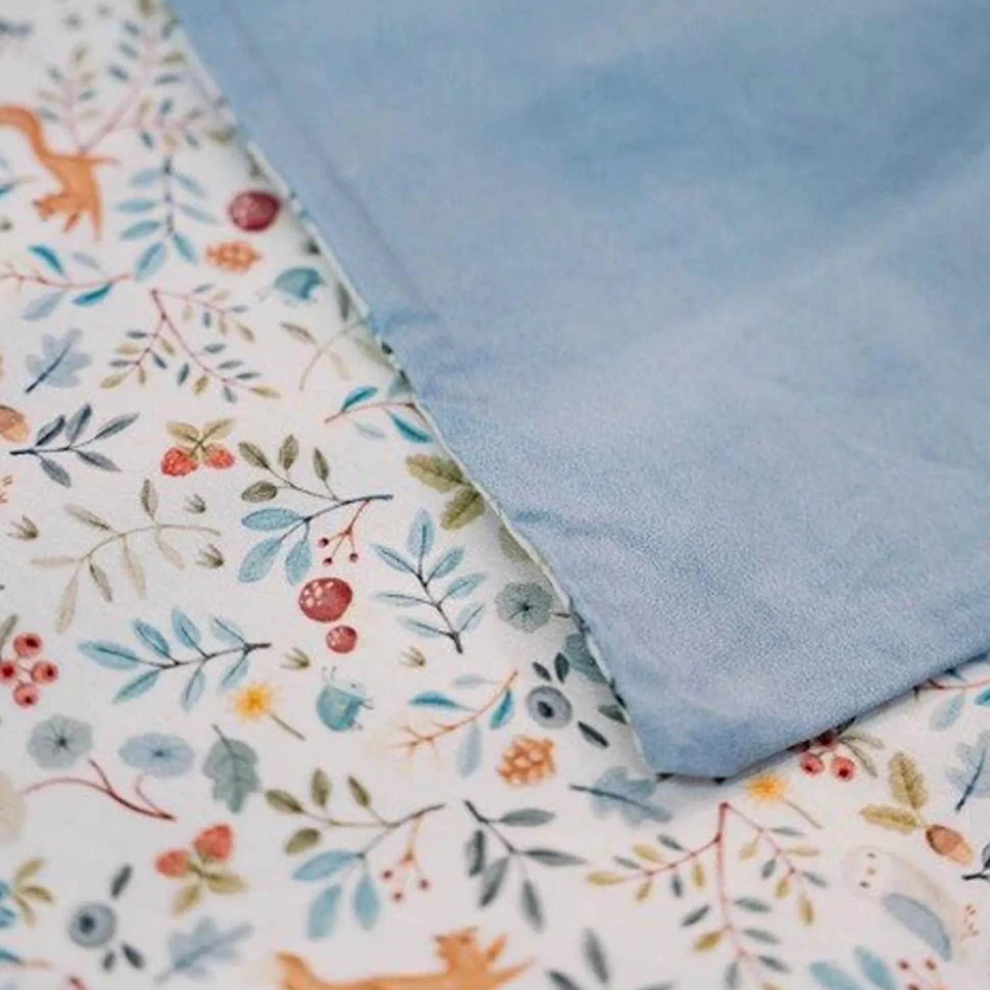 Voeg een vleugje design toe aan de kinderkamer met een prachtig opgemaakt bed. Het dessin Forest Wonders inspireert de mooiste dromen over een avontuurlijk bos met de schattigste dieren zoals eekhoorns, uilen, egels en vogels. Het zachte dekbedovertrek is gemaakt van 100% biologisch katoen met het Forest Wonders dessin aan de ene kant en een effen Denim Blue kleur aan de andere kant. Zowel de kussensloop als het dekbedovertrek zijn comfortabel, mooi afgewerkt en hebben een goed ademend vermogen. Het formaat van het dekbedovertrek is 110 x 140 cm en de kussensloop is 40 x 60 cm. Het beddengoed mag gewassen worden op 40 graden.