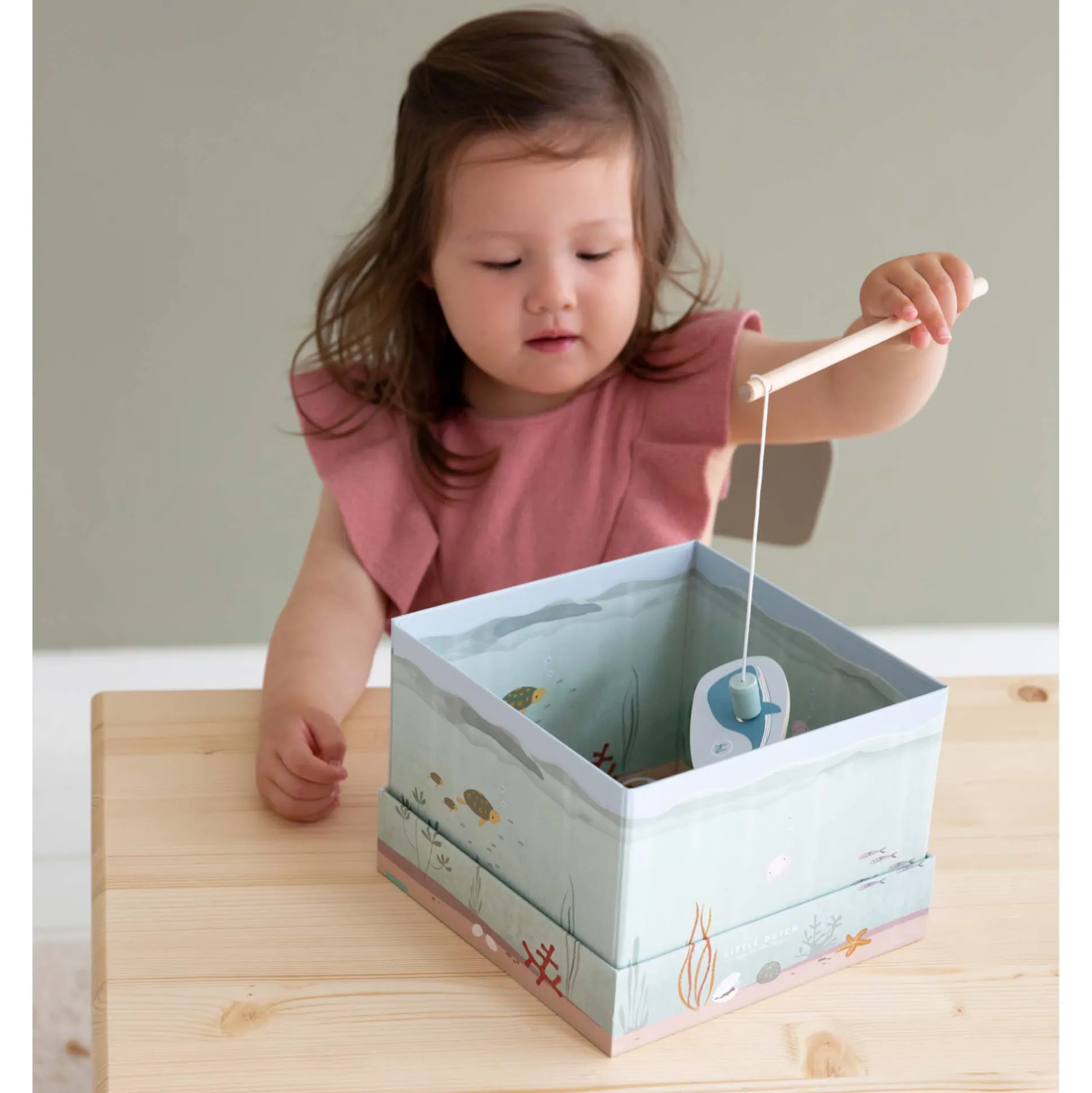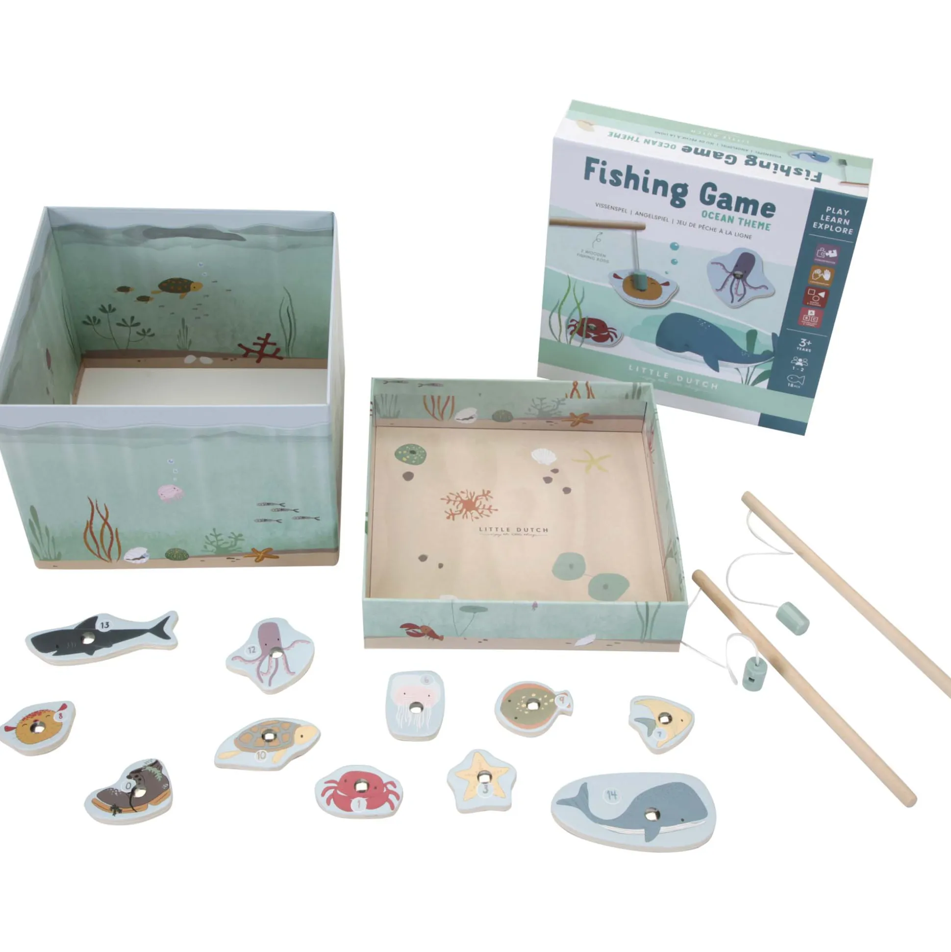 Met dit Little Dutch hengelspel kun je zoveel vissen vangen als je maar wilt. Zorg er wel voor dat je de oude schoen niet aan je hengel blijft plakken. Het mooie is dat je zelfs de moeilijkheidsgraad kunt aanpassen of je kunt er ook een minicompetitie van maken. Het aquarium is gemaakt van karton en de vissen zijn van hout en hebben nummers om de score bij te houden. Geschikt voor kindjes vanaf 3 jaar.