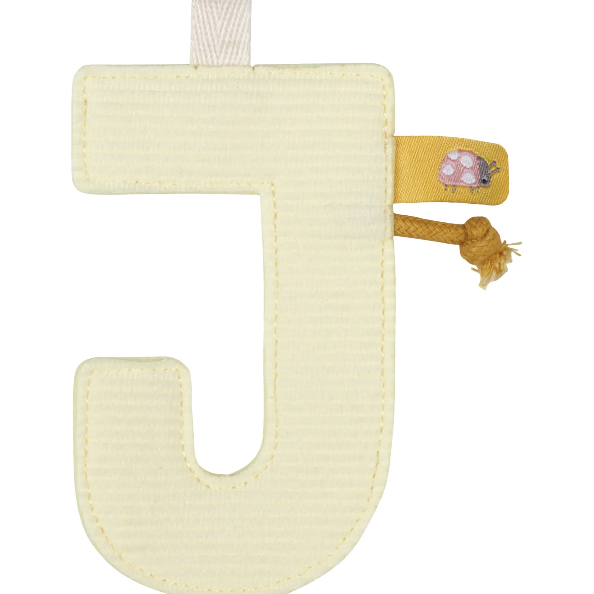 Letter J. Maak je eigen slinger voor je kindje of geef het cadeau. Het is gemaakt van zacht materiaal en is de perfecte decoratie voor de kinderkamer. Er zijn letters (A-Z), cijfers (0-10) en schattige ornamenten en vlaggetjes in bijpassende kleuren waarmee je je eigen slinger kunt maken. Vergeet niet om het bijpassende touw te bestellen waaraan je de ornamenten kunt hangen. Wasinstructie: enkel oppervlakte reiniging met een vochtige doek. Afmeting B 7cm x H 11 cm x D 0,50 cm
