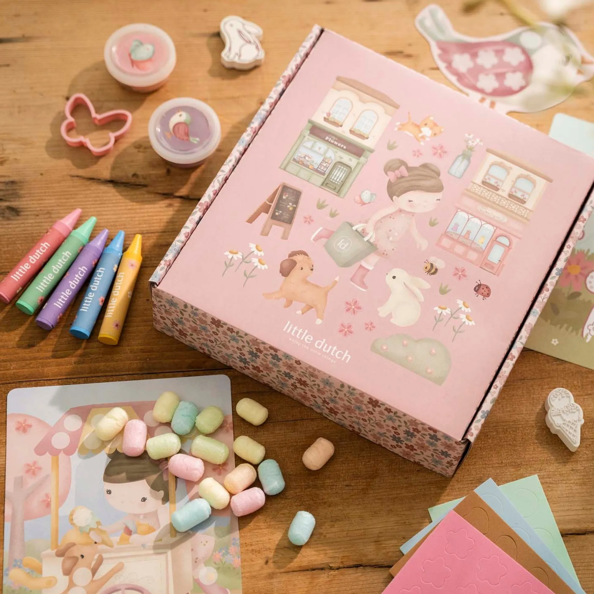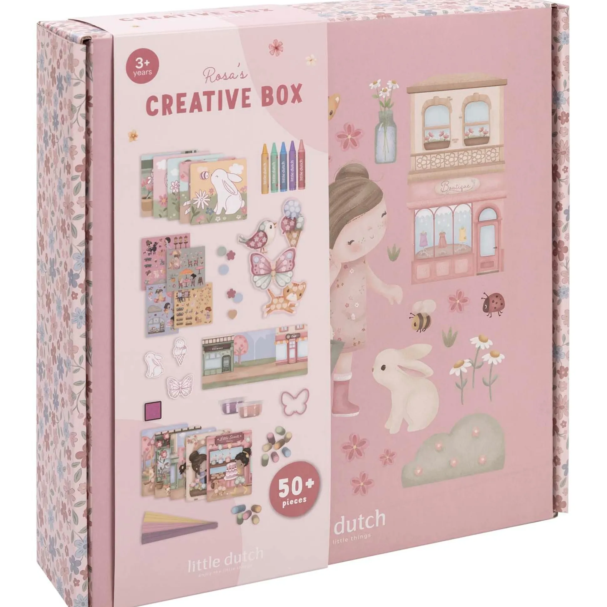 Laat de fantasie van je kindje stralen met de Little Dutch Rosa & Friends knutseldoos, een XL knutseldoos vol stickers, waskrijtjes, papier, verf, foamklei en stempels. Dit creatieve speelgoed voor kinderen vanaf 3 jaar zit boordevol materialen om samen te knutselen, tekenen en plakken. Perfect als vrolijk knutselpakket voor kleuters en een ideale cadeautip voor kleine kunstenaars. Elk projectje, van kleurrijke tekeningen tot zelfgemaakte mini kunstwerkjes, wordt een heerlijk moment om samen te genieten. Met de Little Dutch Rosa & Friends knutseldoos maak je spelenderwijs herinneringen die blijven.