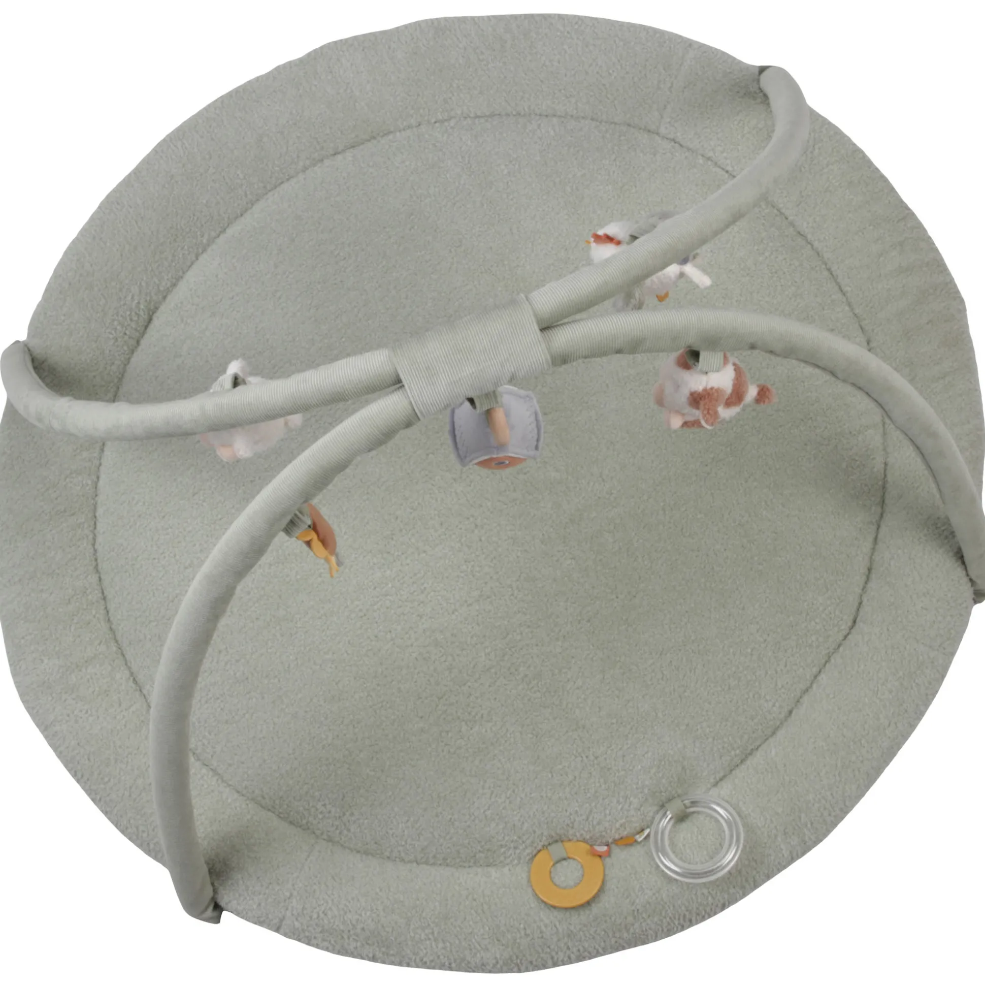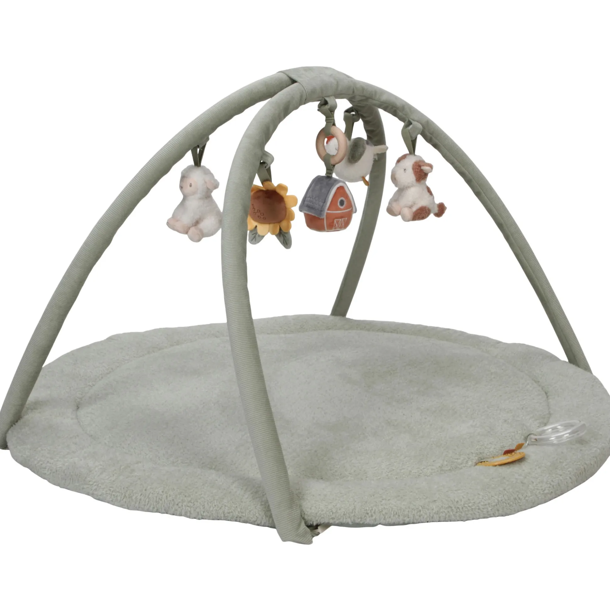 Zoveel te zien, te voelen en te horen. Elke dag is een nieuw avontuur met dit Little Dutch speelkleed uit de Little Farm collectie. Het groene kleed heeft twee grote bogen waar 5 verschillende knuffeltjes aan hangen. De kip, koe, schaap, bloem en schuur helpen kleintjes bij het ontwikkelen van sensorische vaardigheden en stimuleren de hand-oogcoördinatie. Waarschuwing: om te voorkomen dat het kind verstrikt raakt, en zich bezeert, verwijder dit speelgoed wanneer het kind op handen en voeten begint te kruipen. Te monteren door een volwassene.