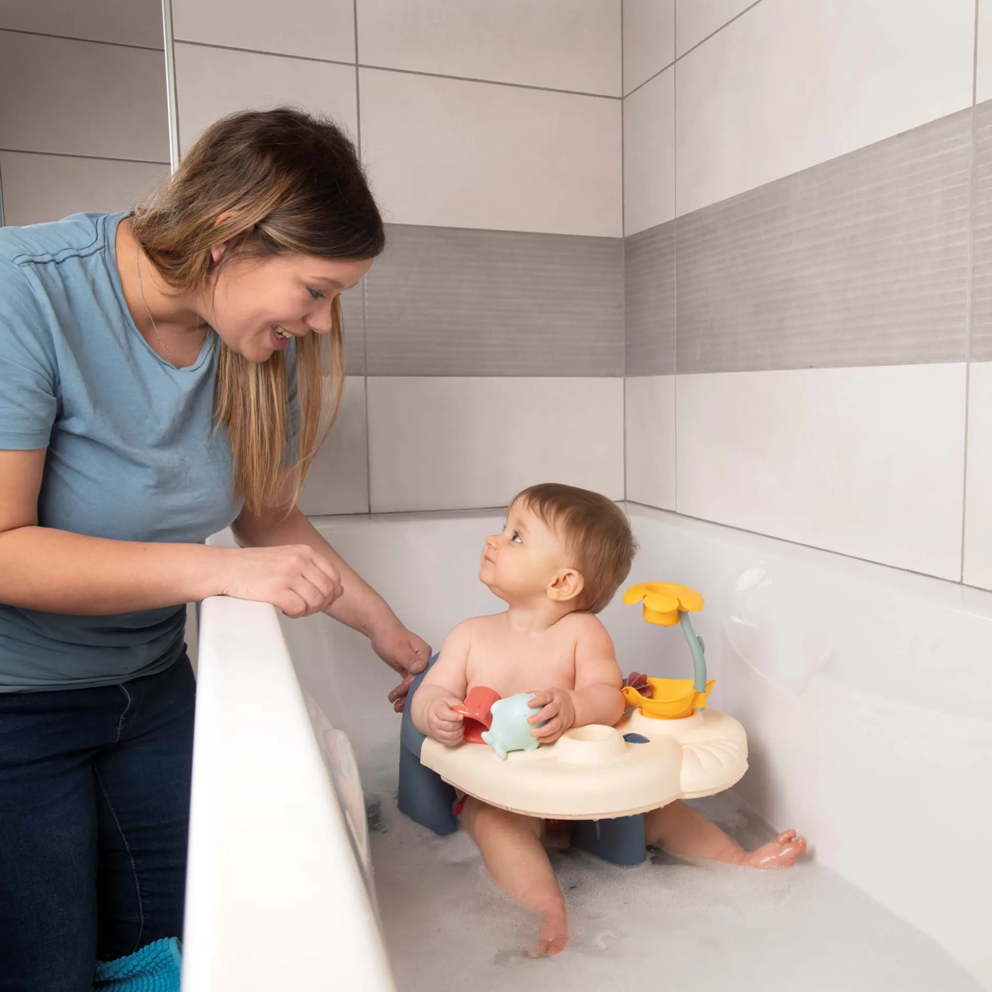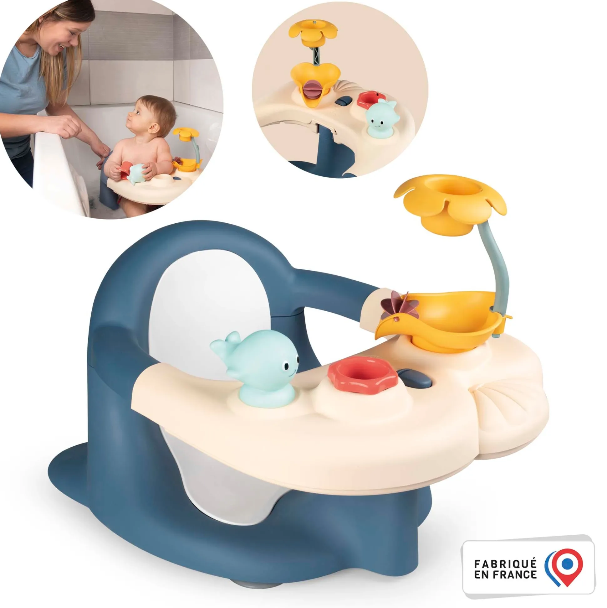 Met het Little Smoby baby bath time badzitje word het in bad gaan voor je kindje heel leuk! Vanaf 6 maanden kan je kindje comfortabel in dit badzitje zitten. Het zitje moet bevestigd worden, met de meegeleverde zuignappen, op een glad oppervlakte zoals de bodem van het bad. Je kindje kan lekker spelen met het water terwijl jij hem veilig kan wassen. De badring heeft verschillende speelse en grappige activiteiten: een walvissproeier, een schoepenrad, een waterbloem en een beker. Dit is goed voor de ontwikkeling van de nieuwsgierigheid en coördinatie van je kindje. Zijn jullie klaar met badderen, spelen en wassen? Dankzij het dubbele actieknopsysteem verschuif je de plank en kan je jouw kindje gemakkelijk uit het badzitje halen. Ook het zitje haal je makkelijk uit bad dankzij het ontgrendelsysteem. Deze gebruiksvriendelijke badring maakt de bad tijd van jou en je kindje een stuk makkelijker en gezelliger. Te gebruiken vanaf: 6 maanden