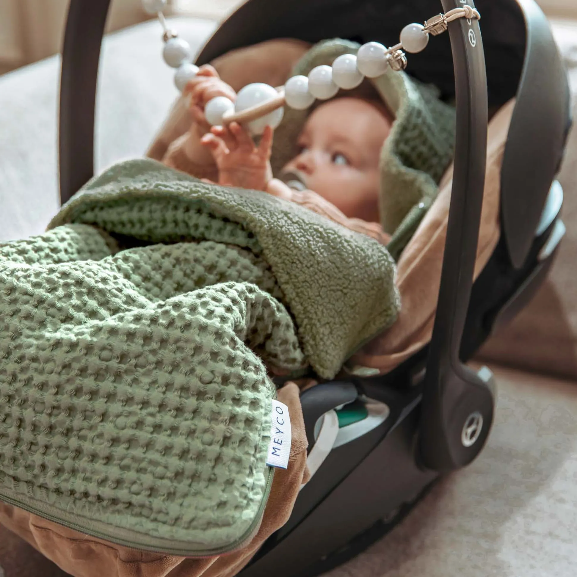 Meyco autostoel voetenzak Wafel Teddy Olivegreen