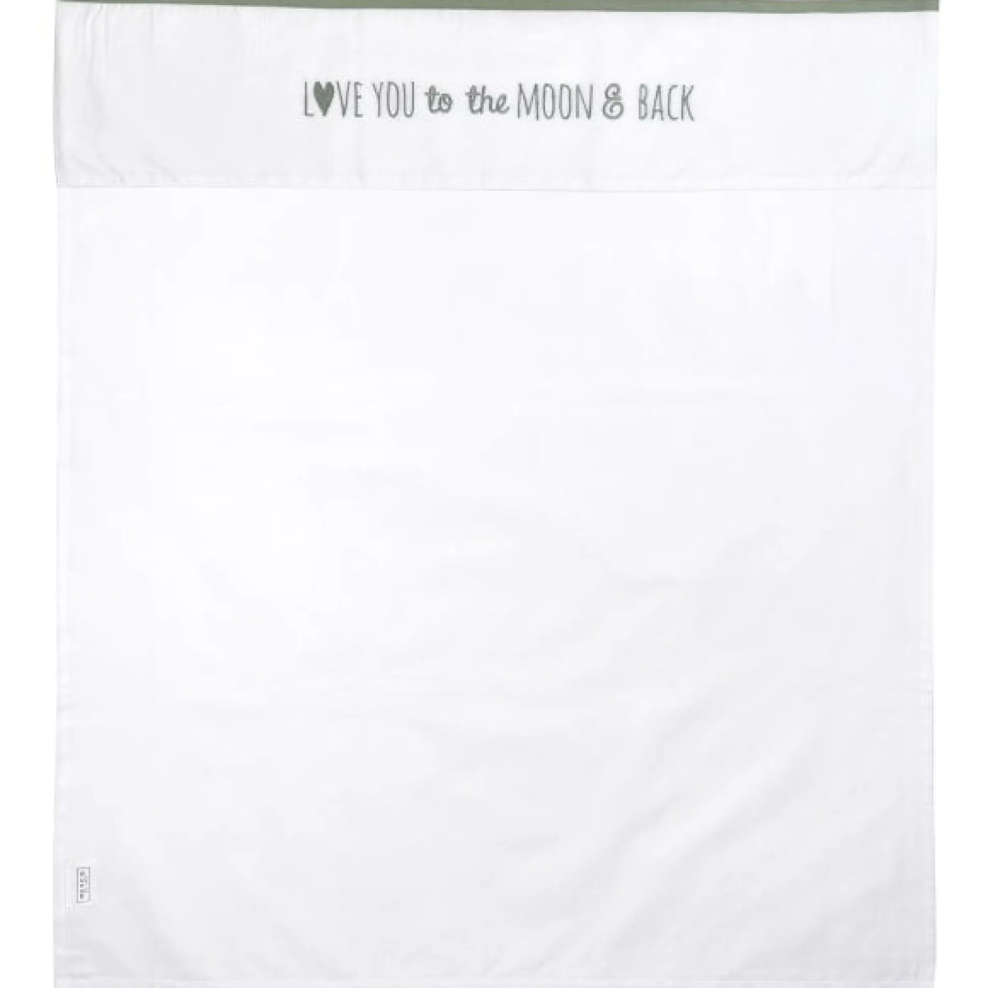 Met dit Meyco baby laken Love you to the moon geniet je kindje van een comfortabele nachtrust. Het lakentje voelt dankzij de 100% katoenen kwaliteit namelijk heerlijk zacht. Het natuurlijke materiaal ademt goed en neemt vocht uitstekend op. Je kindje ervaart hierdoor een droog en fris slaapklimaat. Het witte lakentje heeft een gekleurde bies op de omslagstrook met de tekst ‘Love you to the moon & back’. En daar is natuurlijk niets aan gelogen.Het lakentje is verkrijgbaar in twee maten: een wieglakentje van 75×100 cm voor in de wieg en kinderwagen en een lakentje voor een ledikant van 100×150 cm. Gebruik het lakentje onder een deken. Wasbaar in de wasmachine op maximaal 40 graden. Geschikt voor de droger, maar blijft ook zacht bij drogen aan de waslijn.