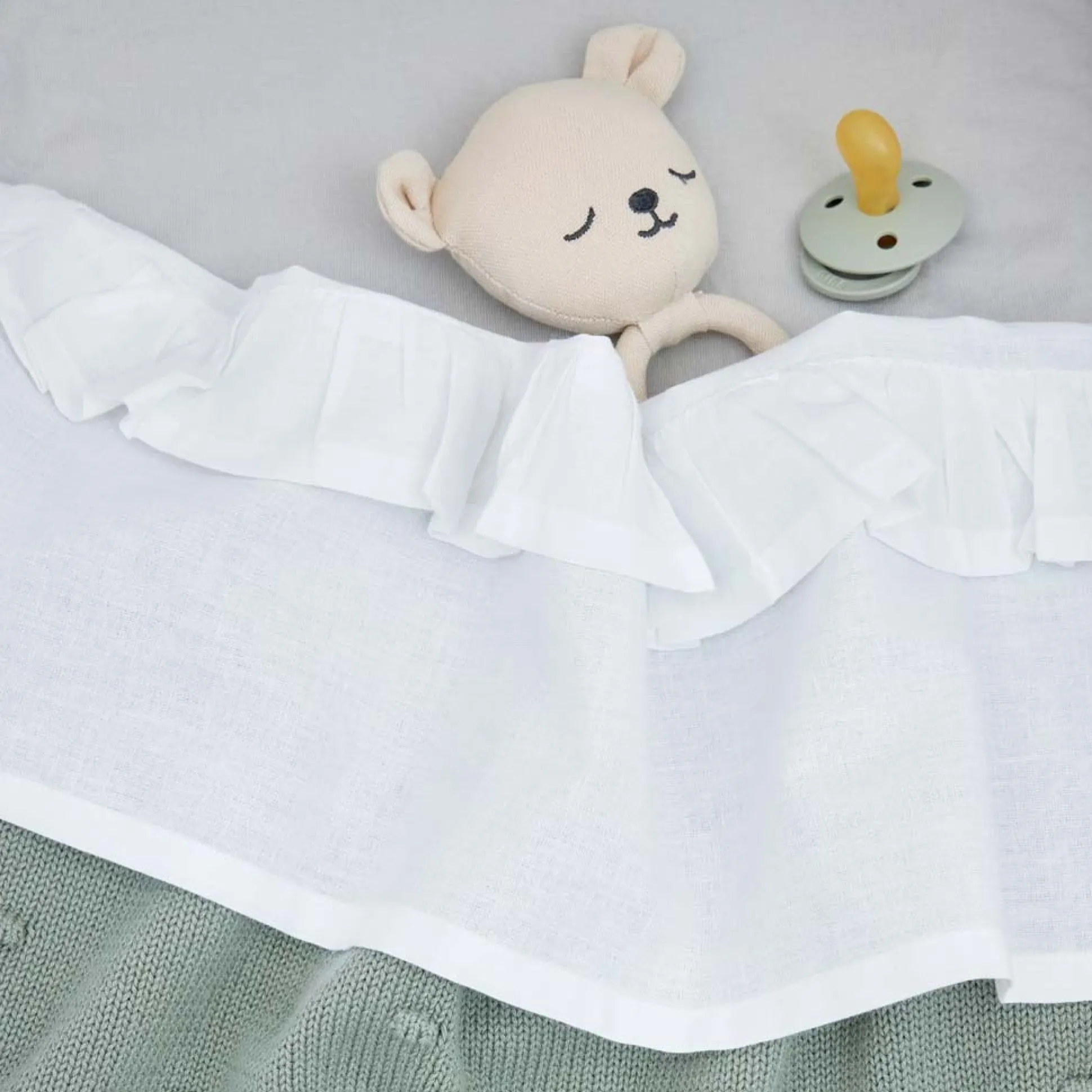 Dit Meyco ledikantlaken voelt dankzij de 100% katoenen kwaliteit heerlijk zacht aan en zorgt voor een comfortabele nachtrust voor jouw kleintje. Het lakentje heeft ruches aan de bovenrand wat zorgt voor een mooi elegant design. Makkelijk te combineren met verschillende ledikantdekens! Afmeting: 100 x 150 cm. Wassen op maximaal 40 graden.