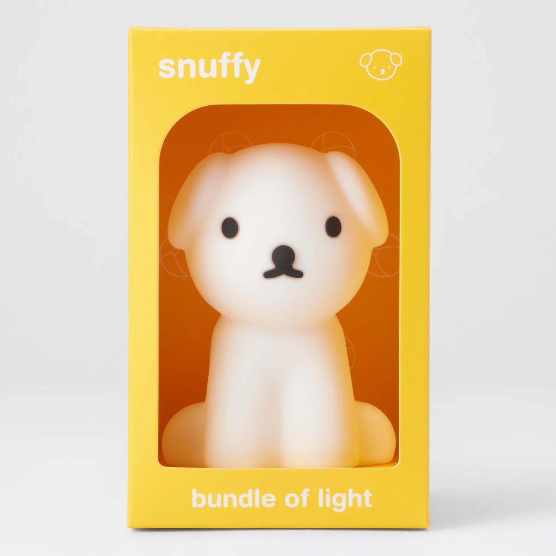 Mini lampje Snuffie uit de Bundle of Light serie van Mr Maria. Dit led-lampje is gemaakt van BPA-vrij siliconen en wordt geleverd met een celbatterij. Het lampje heeft een lichtschakelaar aan de onderkant en gaat na 15 minuten automatisch uit. De batterij (CR2032) heeft een levensduur van circa 30 uur. De Bundle of Light serie bestaat verder nog uit nijntje, Boris en Leeuw, spaar ze allemaal! Afmetingen: 7,5 x 7,5 x 15 cm.