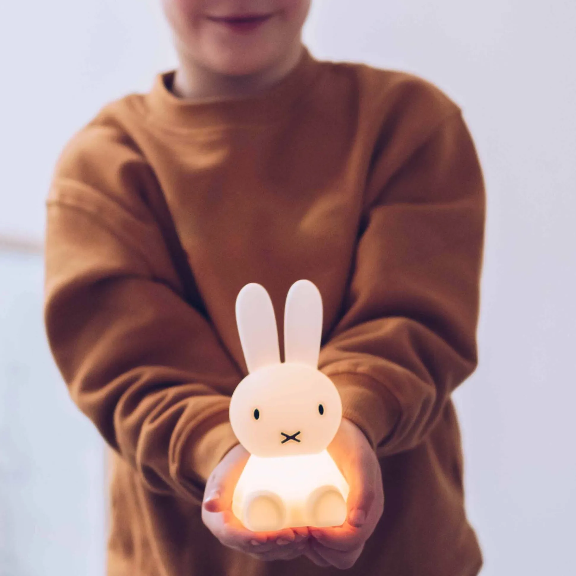 Mini lampje Nijntje uit de Bundle of Light serie van Mr Maria. Dit led-lampje is gemaakt van BPA-vrij siliconen en wordt geleverd met een celbatterij. Het lampje heeft een lichtschakelaar aan de onderkant en gaat na 15 minuten automatisch uit. De batterij (CR2032) heeft een levensduur van circa 30 uur. De Bundle of Light serie bestaat verder nog uit Boris en Leeuw, spaar ze allemaal! Afmetingen: 7,5 x 7,5 x 15 cm.