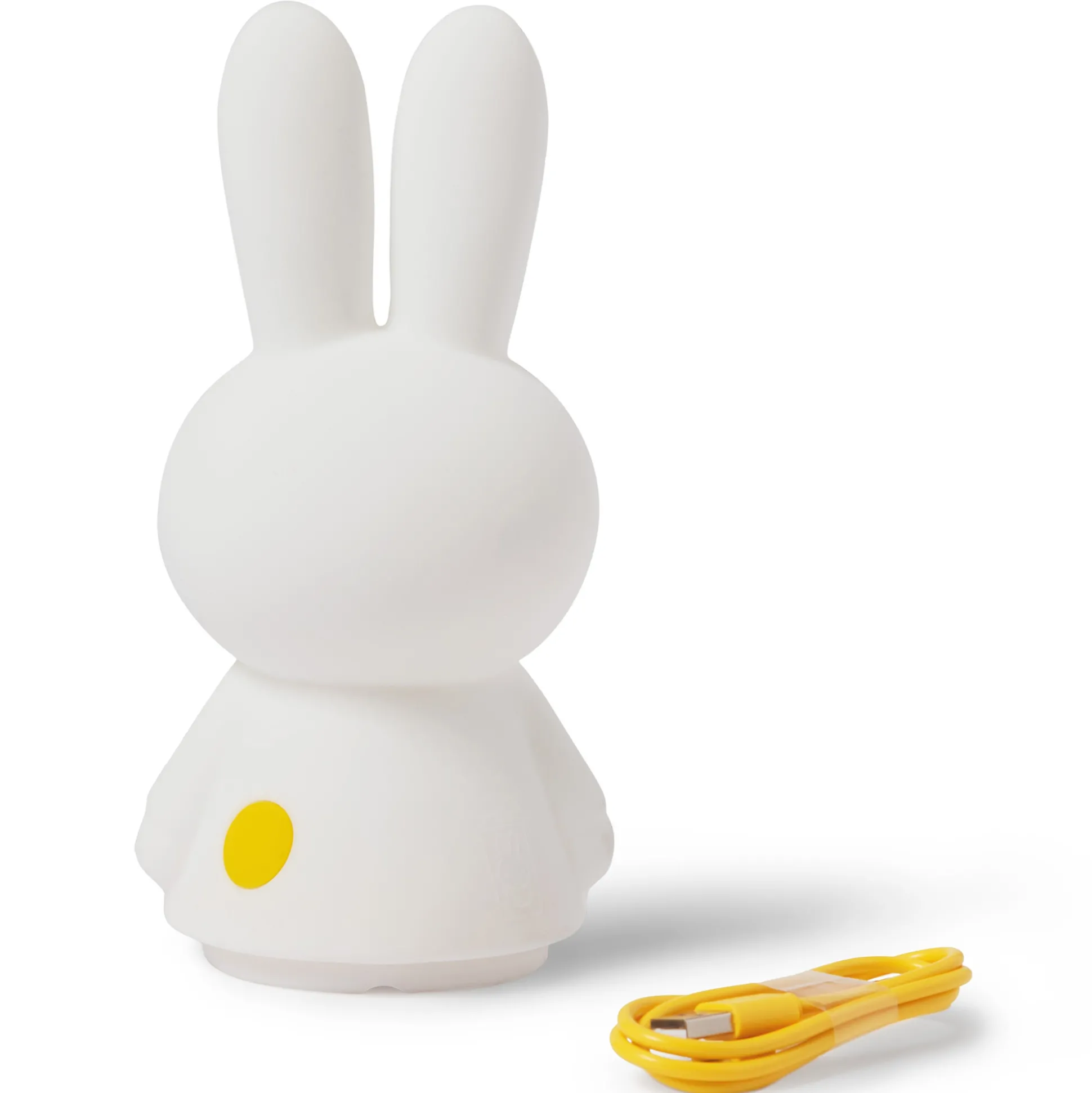 Nijntje, een icoon die niet meer weg te denken is in iedere kinderkamer. Nu ook in een nieuwe afmeting: 22cm! Deze Nijntje lamp is in 4 standen te dimmen en kan dus worden gebruikt voor verschillende momenten. Bijvoorbeeld bij het voorlezen van een boekje, voor een nachtvoeding of als waaklichtje tijdens de nacht. De Nijntje lamp is draadloos en kan dus gerust mee uit logeren. Het is gemaakt van een zachte siliconen welke BPA vrij is, wordt geleverd met een USB-oplaadkabel en gaat automatisch uit na 60 minuten.
