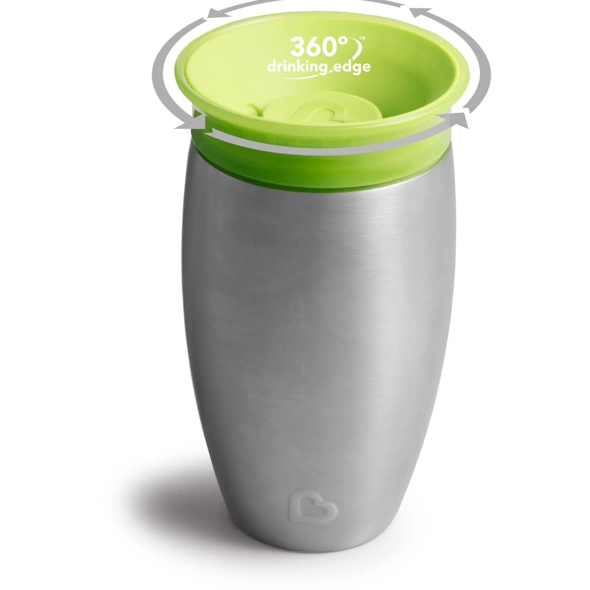 De Munchkin Miracle 360° Steel drinkbeker is perfect voor kinderen vanaf 12 maanden. Dankzij de slimme 360° drinkrand kan je kleintje drinken vanaf elke kant, zonder te morsen. De rand sluit automatisch zodra je kind stopt met drinken. Gemaakt van stevig roestvrij staal, blijft het drankje langer koel – ideaal voor onderweg. Het lekvrije ontwerp maakt de beker gebruiksvriendelijk en veilig. Bovendien is hij BPA-vrij en vaatwasserbestendig, wat het schoonmaken extra makkelijk maakt. Inhoud: 266 ml.