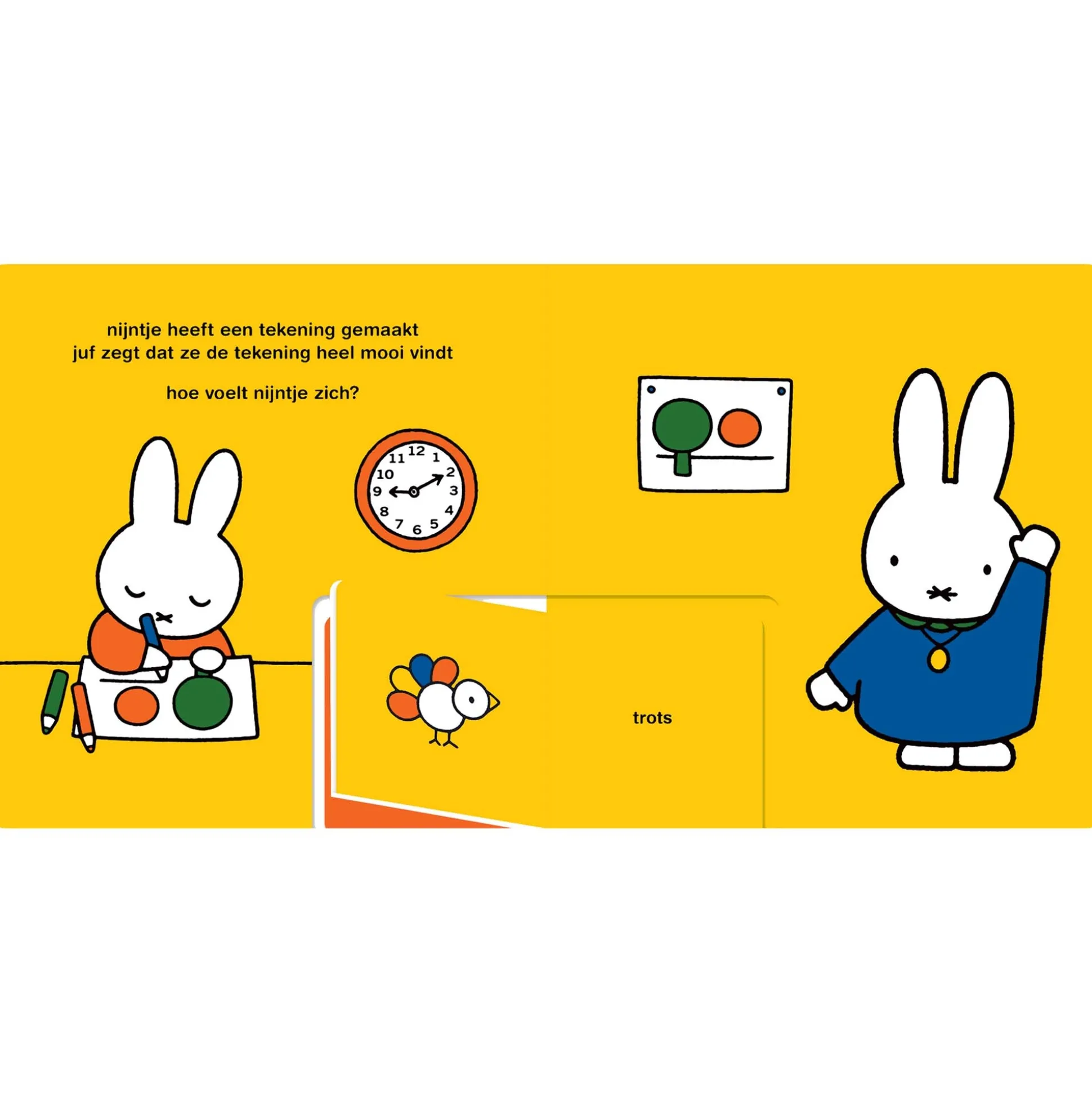 Hoe voelt nijntje zich? Nijntje is vaak blij, maar soms is ze verdrietig of bang. Herken jij deze gevoelens? In het kleine boekje van dit boek-in-boek formaat zoek je de passende emoties bij de pagina’s van het grote boek.