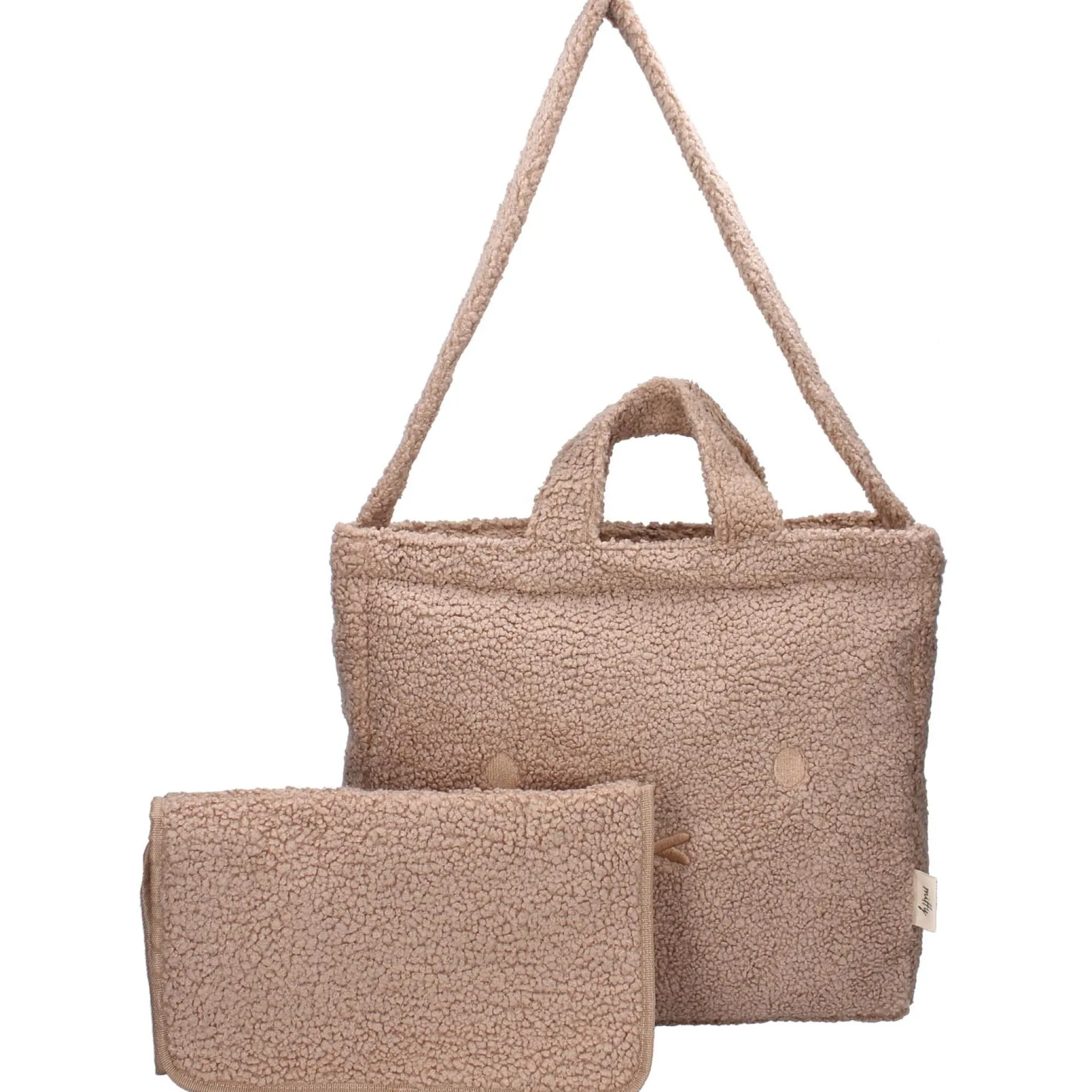Deze zachte luiertas van bruine teddy stof is voorzien van alle gemak en heeft het kernmerkende gezicht van Nijntje op de voorzijde. De tas heeft een lange schouderband waarmee je ‘m ook aan een kinderwagen kunt hangen. Verder heeft de tas twee praktische handvatten aan de bovenkant en een verborgen vak met rits aan de achterzijde. De tas opent en sluit eenvoudig door de ritssluiting. De binnenzijde is voorzien van diverse steekvakken, zodat flesjes en luiers veilig opgeborgen kunnen worden. Bij de tas wordt ook een bijpassend verschoningsmatje geleverd! Afmeting: 38 x 52 x 15cm