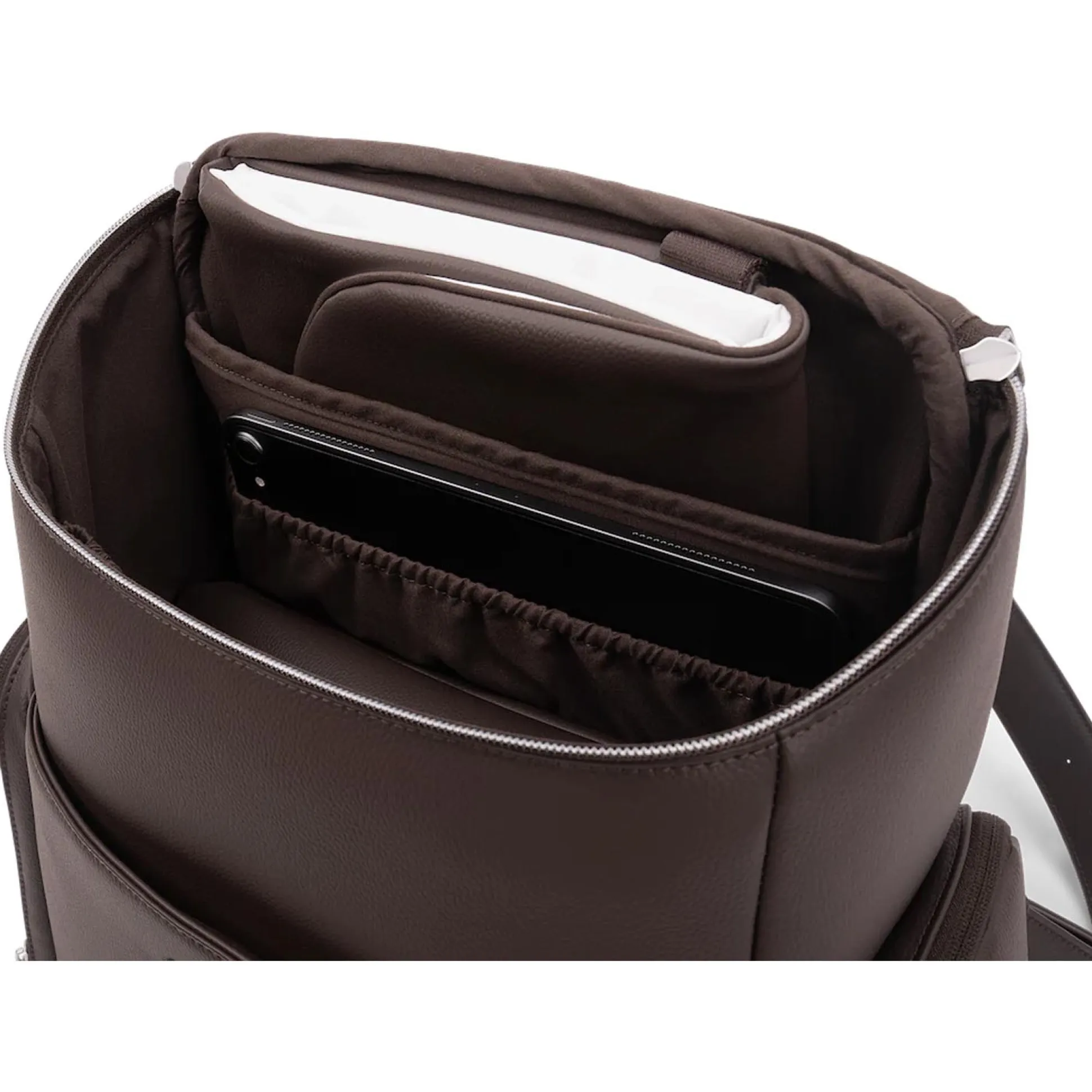 De Nuna x BMW Essential Bag is de ideale verzorgingstas die dagelijkse luxe biedt met haar lederen uitstraling en veelzijdige functionaliteit voor ouders. Als een veelzijdige rugzak die ook fungeert als verzorgingstas, heeft de tas een laptopvriendelijk ontwerp met een slimme indeling van buiten- en binnenvakken, een handige verschoonmat en een geïntegreerde bevestiging voor over je handbagagekoffertje voor als je op reis bent. Of je nu een wandeling door het park maakt of een weekendje weg gaat, deze stijlvolle en praktische accessoire voegt gemak en elegantie toe.