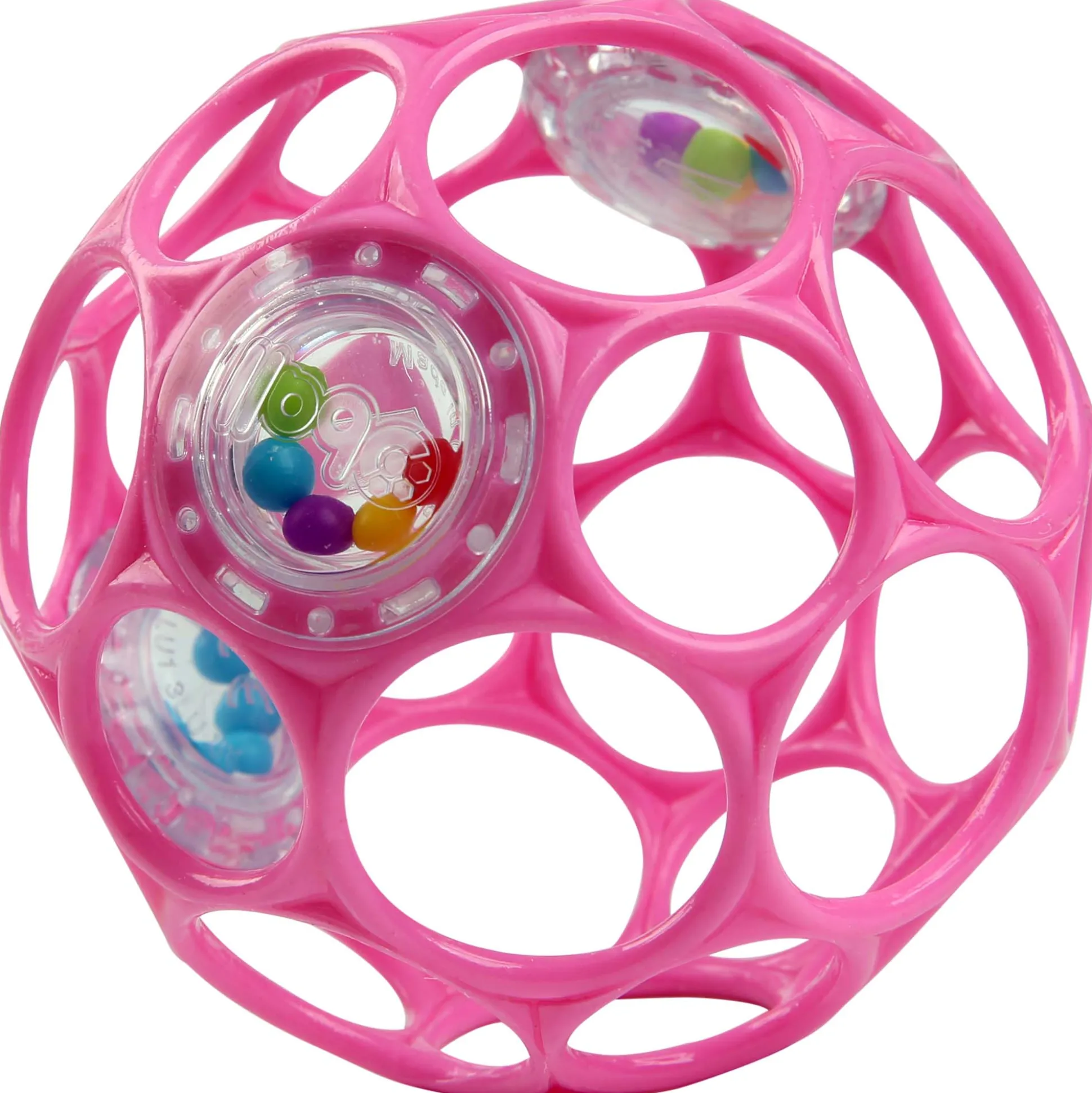 Oball rattle is een leuke gekleurde bal met veel bolletjes met geluidjes. Deze bal heeft 28 vingergaatjes en is erg licht en daarom gemakkelijk om vast te pakken voor je kleintje. Bevat transparante rammelaars met gekleurde bolletjes die leuke geluidjes maken wanneer je kindje de bal beweegt. Verkrijgbaar in diverse kleuren. Geschikt vanaf de geboorte.