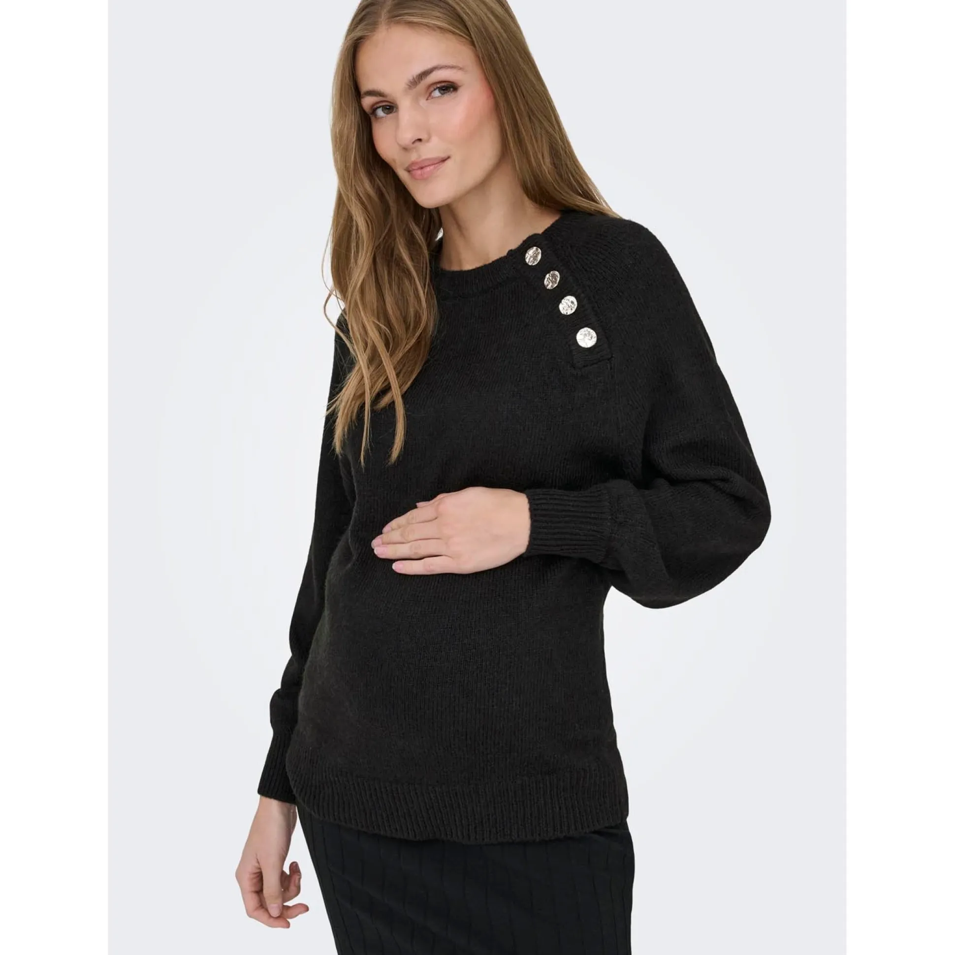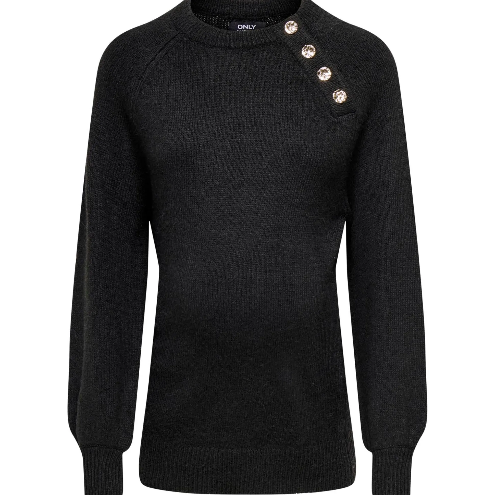 ONLY zwangerschapstrui. Deze gebreide trui is deels gemaakt van gerecycled polyester. De trui heeft een ronde hals en lange mouwen met manchetten. De hals is aan de linkerzijde afgewerkt met 4 decoratieve goudkleurige knopen. Combineer de trui met de andere items uit de ONLY collectie bij Prénatal. Verkrijgbaar in S t/m XXL. Samenstelling: 50% acryl en 50% gerecycled polyester. Binnenstebuiten wassen op 30 graden met gelijke kleuren.
