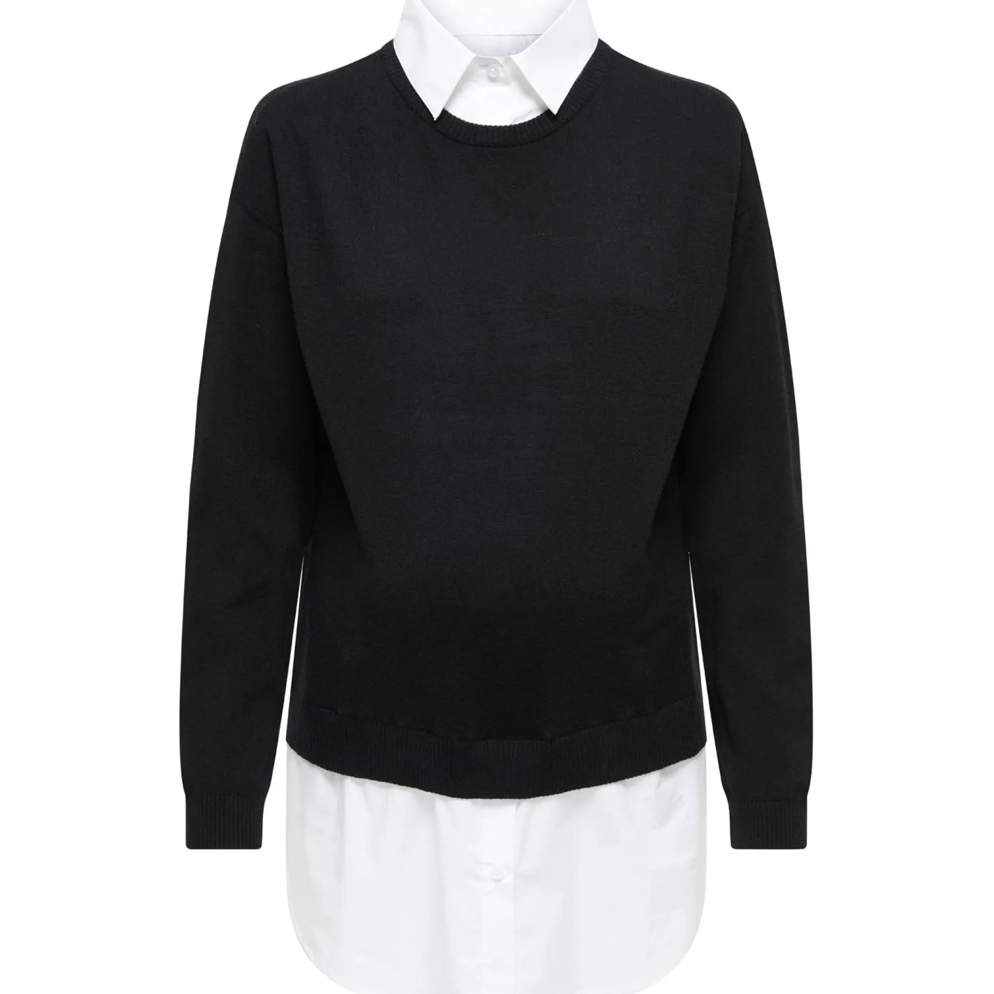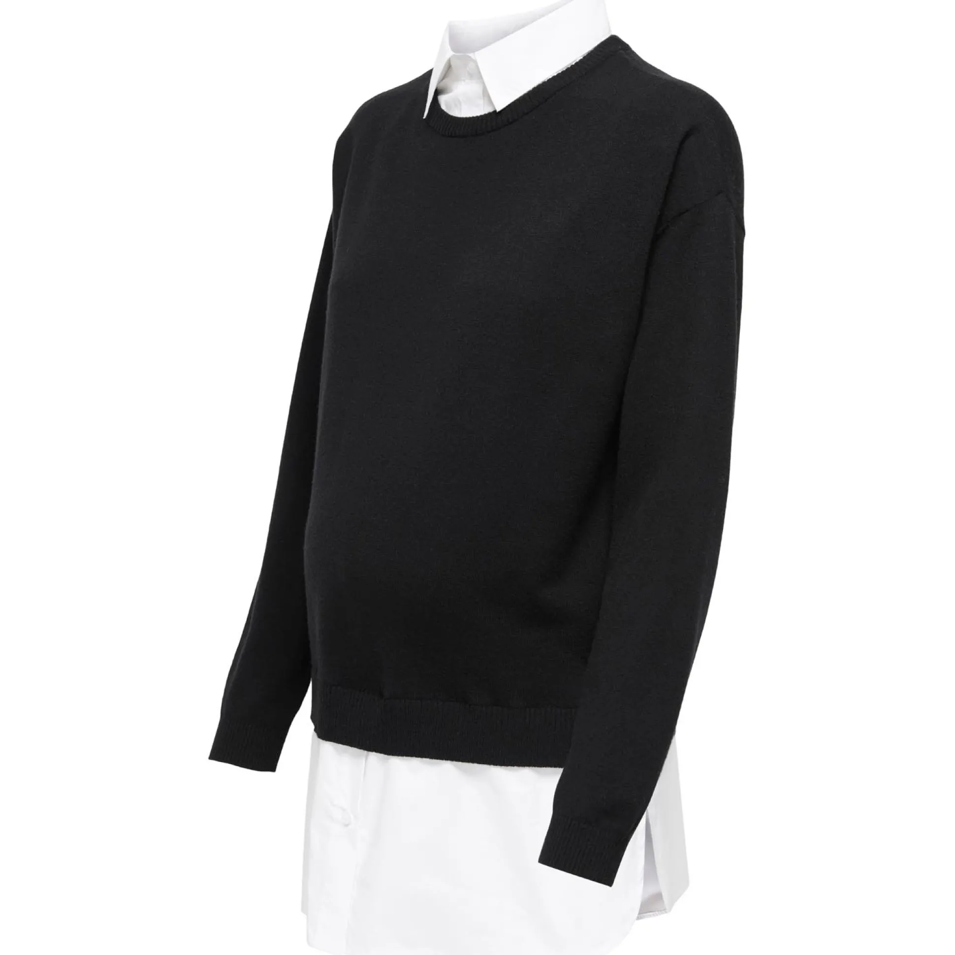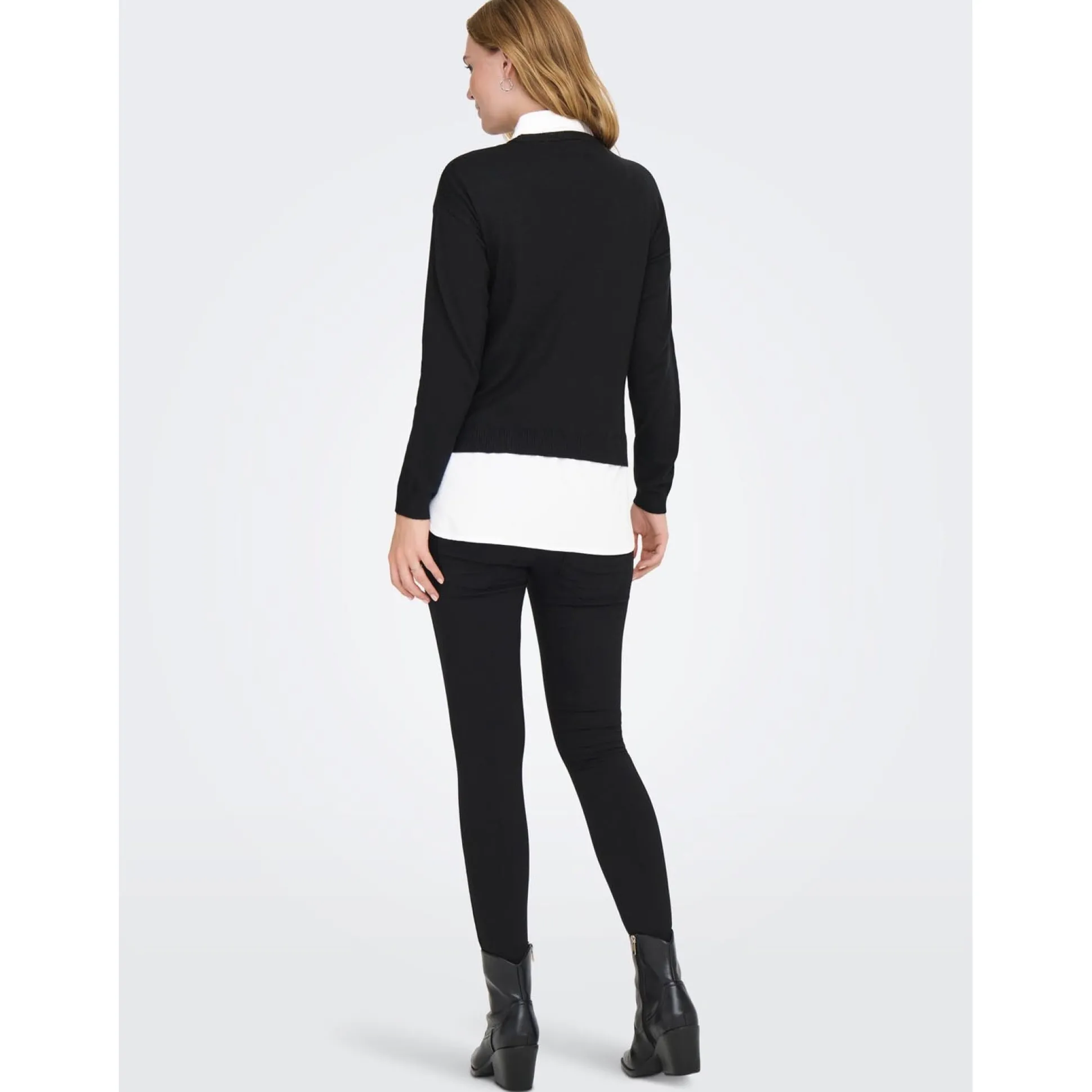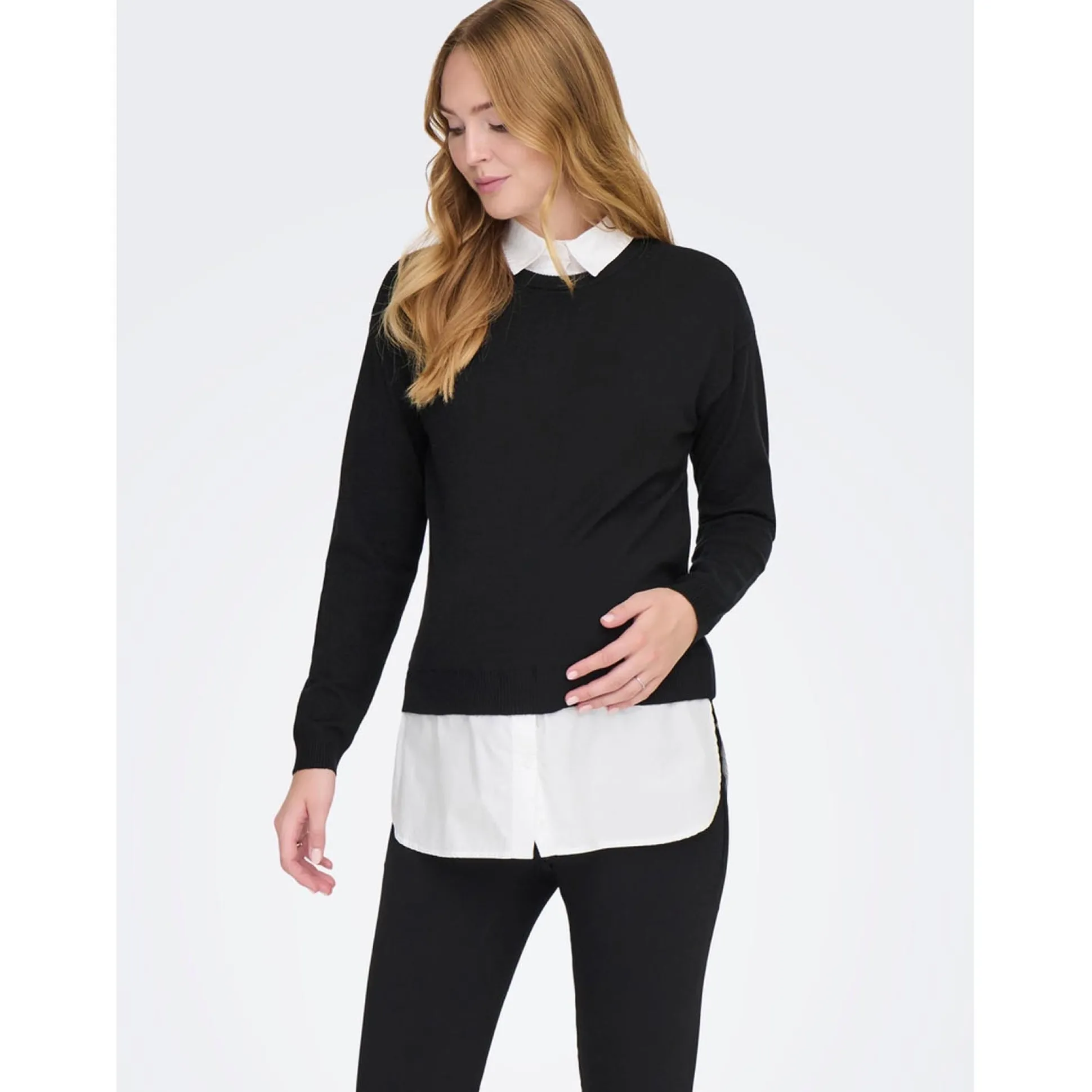 ONLY zwangerschapstrui. Deze trui heeft een fijne breistructuur en is grotendeels gemaakt van viscose. De trui met fake blouse inzet heeft lange rechte mouwen. De trui heeft een ronde kraag met daaronder een blouse kraag voor een leuk gelaagd effect. Combineer de trui met de andere items uit de ONLY collectie bij Prénatal. Verkrijgbaar in S t/m XXL. Samenstelling: 52% viscose, 26% polyester en 22% polyamide. Binnenstebuiten wassen op 30 graden met gelijke kleuren.