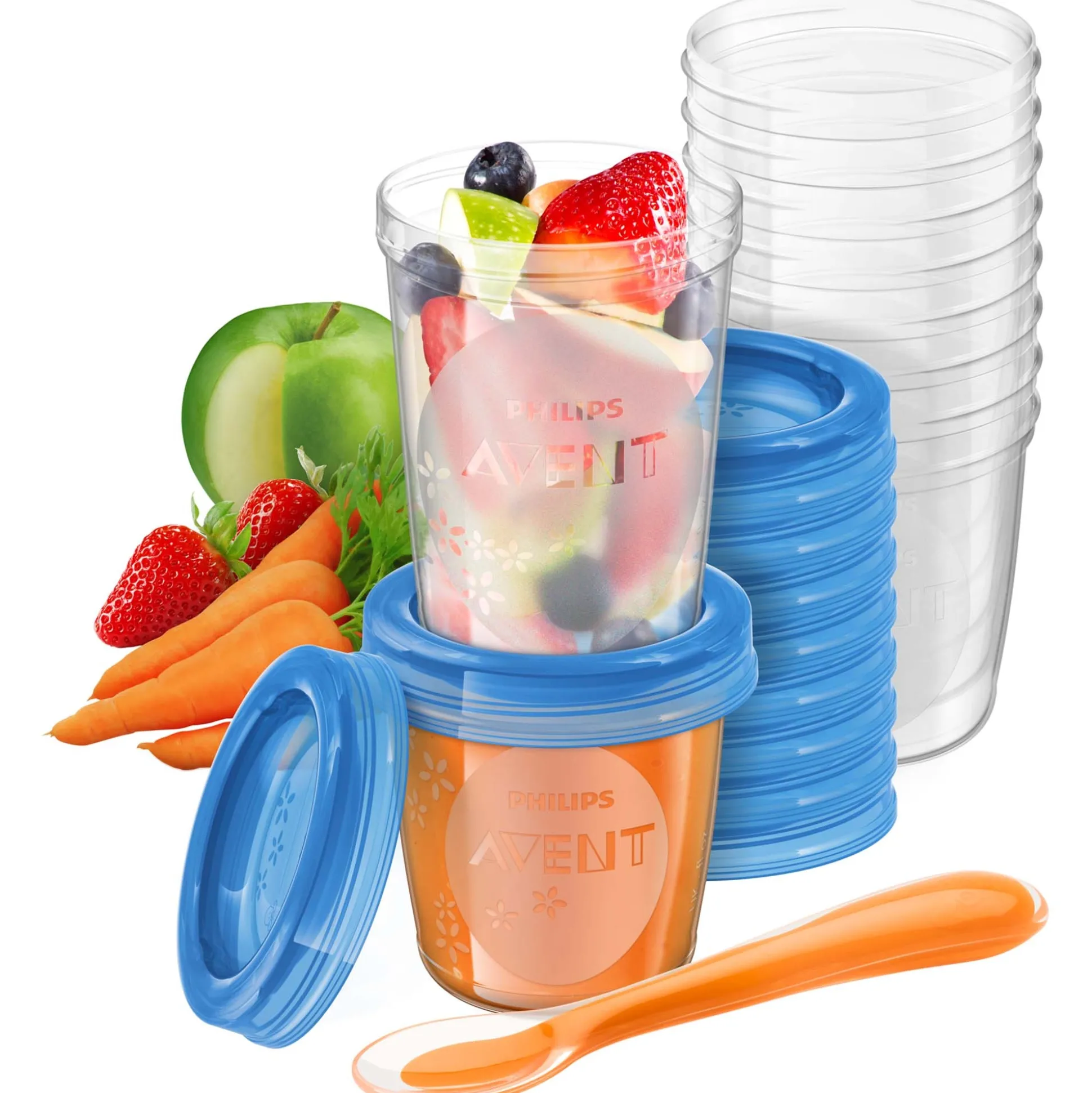 Ideaal voor het bewaren van voeding, thuis en onderweg Met lekvrij deksel De bewaarbekers van Philips Avent zijn veelzijdig, gebruiksvriendelijk en ontworpen om met je baby mee te groeien. De bekers zijn ideaal voor het bewaren van voeding, zowel thuis als onderweg. Ultiem gemak-Dit product is BPA-vrij -Eenvoudig te gebruiken en schoon te maken -Voor gebruik in koelkast en vriezer -Inclusief voedingslepeltje