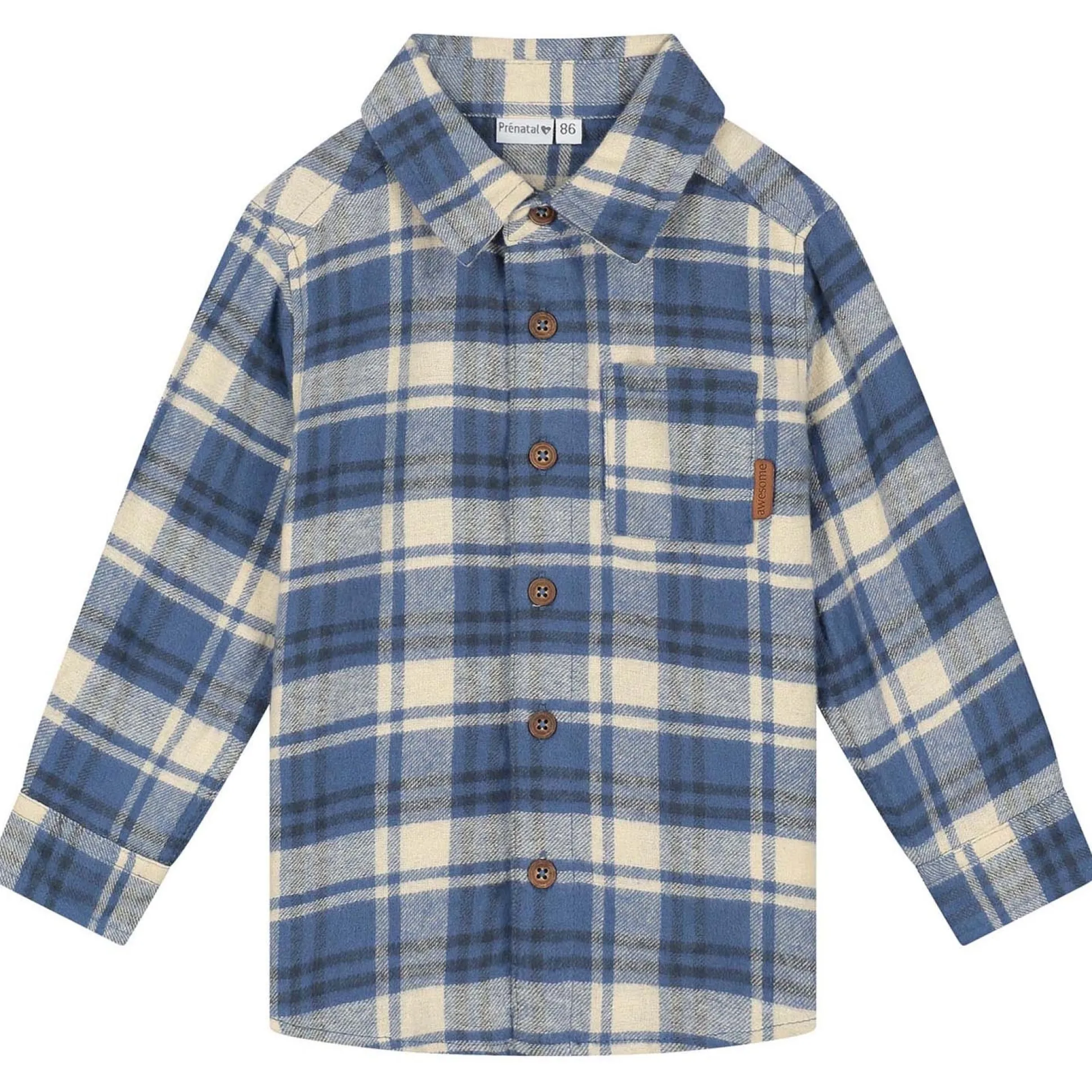 Deze Prénatal blouse is gemaakt van een zachte katoenen kwaliteit. De blouse heeft lange mouwen, een kraag en knoopsluiting aan de voorzijde. De blouse is voorzien van een ruit dessin en is goed te combineren met de rest van de Prénatal collectie. Verkrijgbaar in de maten 56 t/m 122. Kwaliteit: 100% biologisch katoen. Binnenstebuiten wassen op 40 graden met gelijke kleuren. Dit product is getest op schadelijke chemicaliën en gecertificeerd volgens standaard 100 door OEKO-TEX® 23.HIN.84890 HOHENSTEIN HTTI.