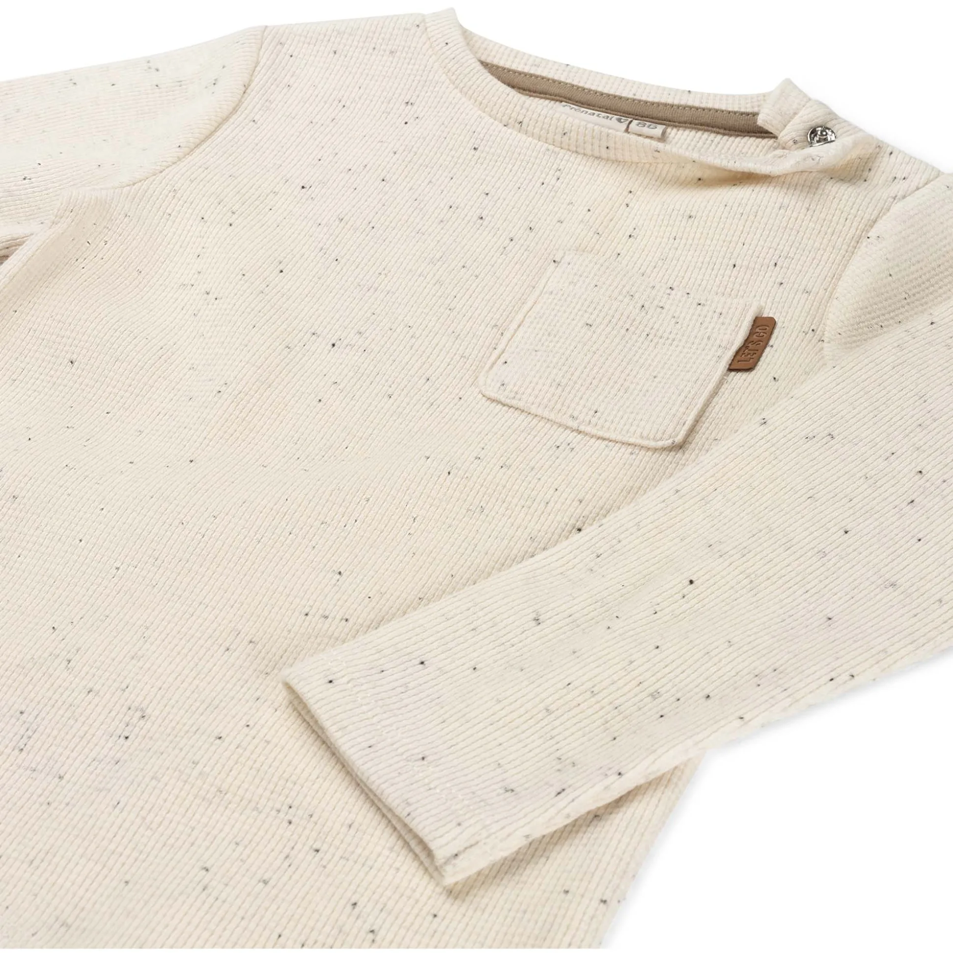 Dit Prénatal baby shirt is gemaakt van een fijne katoenen kwaliteit. Het shirt heeft lange mouwen, een ronde hals en een zakje op de borst. Het shirt heeft een wafel structuur en is goed te combineren met de rest van de Prénatal collectie. Verkrijgbaar in de maten 56 t/m 116. Kwaliteit: 92% biologisch katoen, 5% elastaan. Binnenstebuiten wassen op 40 graden met gelijke kleuren. Dit product is getest op schadelijke chemicaliën en gecertificeerd volgens standaard 100 door OEKO-TEX® BJ020 169567 TESTEX