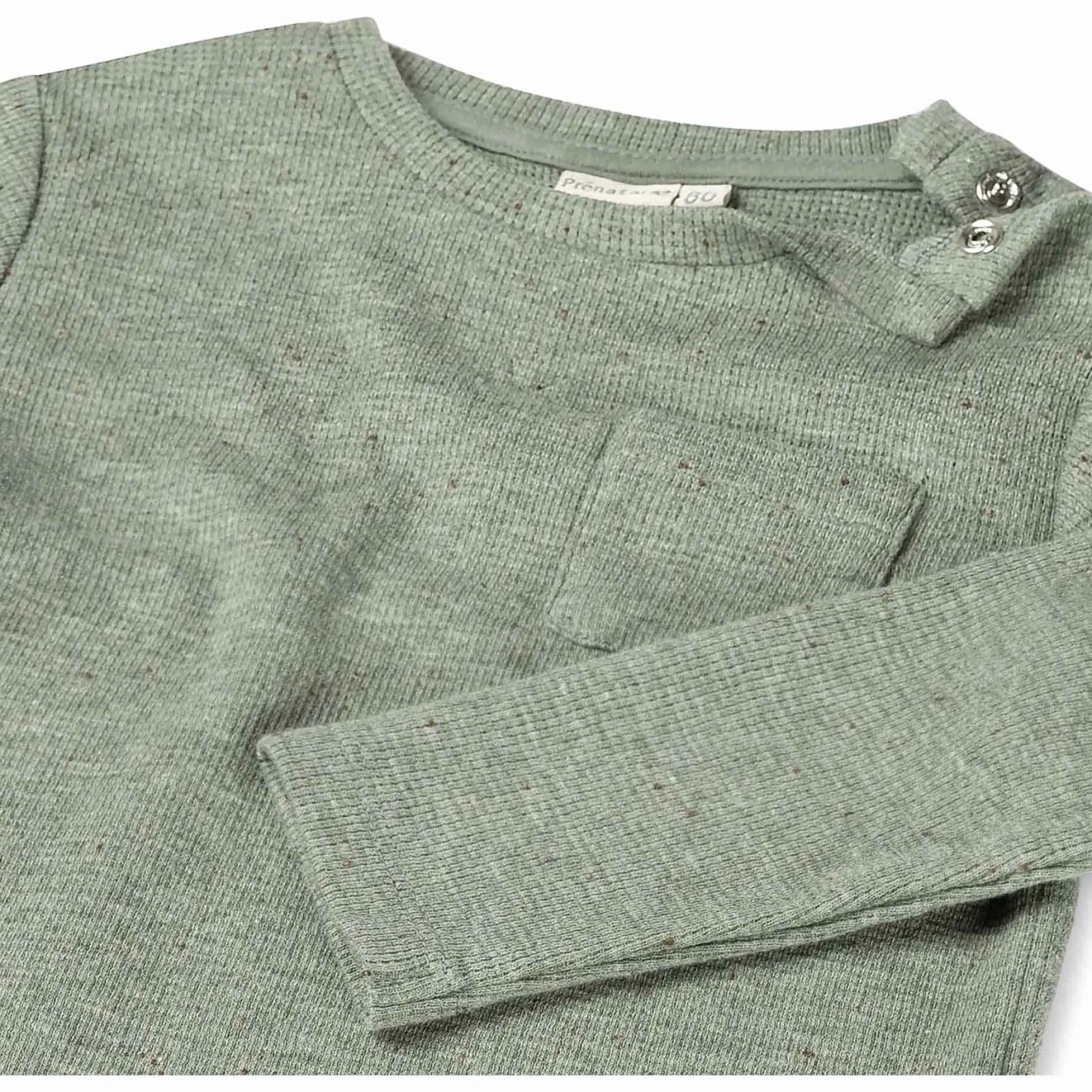 Dit Prénatal shirt is gemaakt van een fijne katoenen kwaliteit. Het shirt heeft lange mouwen, een ronde hals en een zakje op de borst. Het shirt heeft een wafel structuur met een nappy kwaliteit en is goed te combineren met de rest van de Prénatal collectie. Verkrijgbaar in de maten 56 t/m 116. Kwaliteit: 92% biologisch katoen, 3% polyester en 5% elastaan. Binnenstebuiten wassen op 40 graden met gelijke kleuren. Dit product is getest op schadelijke chemicaliën en gecertificeerd volgens standaard 100 door OEKO-TEX® BJ020 169567 TESTEX