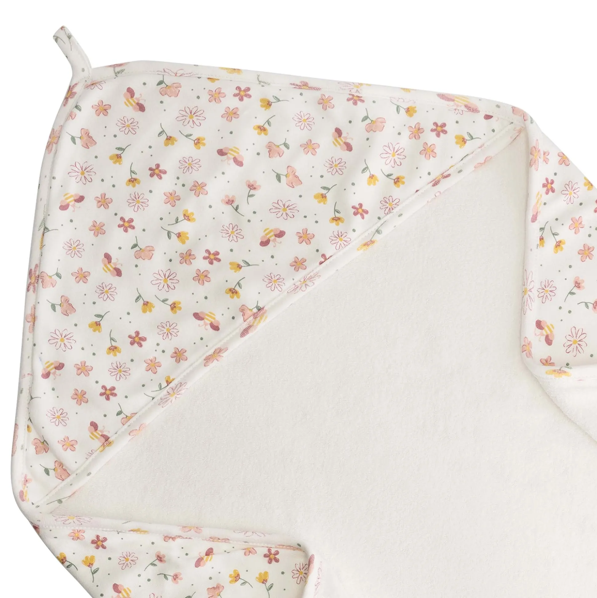 Deze mooie badcape komt uit de Bloem collectie van Prenatal. De badcape voelt heerlijk zacht aan dankzij de badstof binnenkant. Gebruik de badcape na een lekker badje om je kindje in te wikkelen of houd je kindje warm tijdens een voeding of in de box. Wasvoorschriften: de badcape is wasbaar op 30 graden in de wasmachine. Wassen met gelijke kleuren.