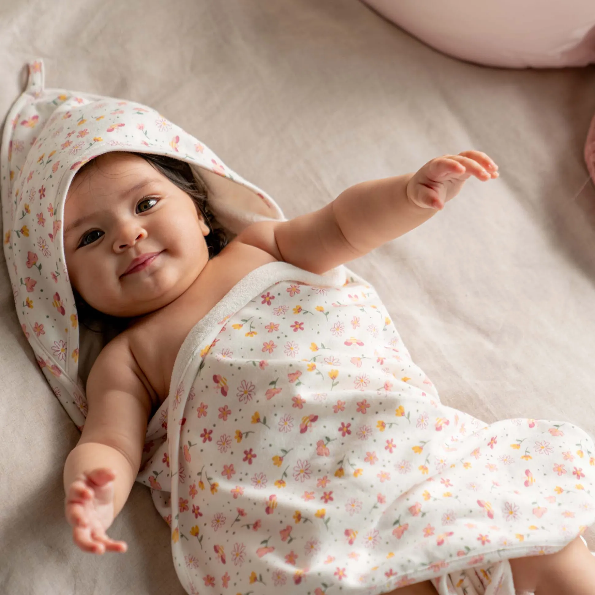 Prénatal badcape Bloem roze