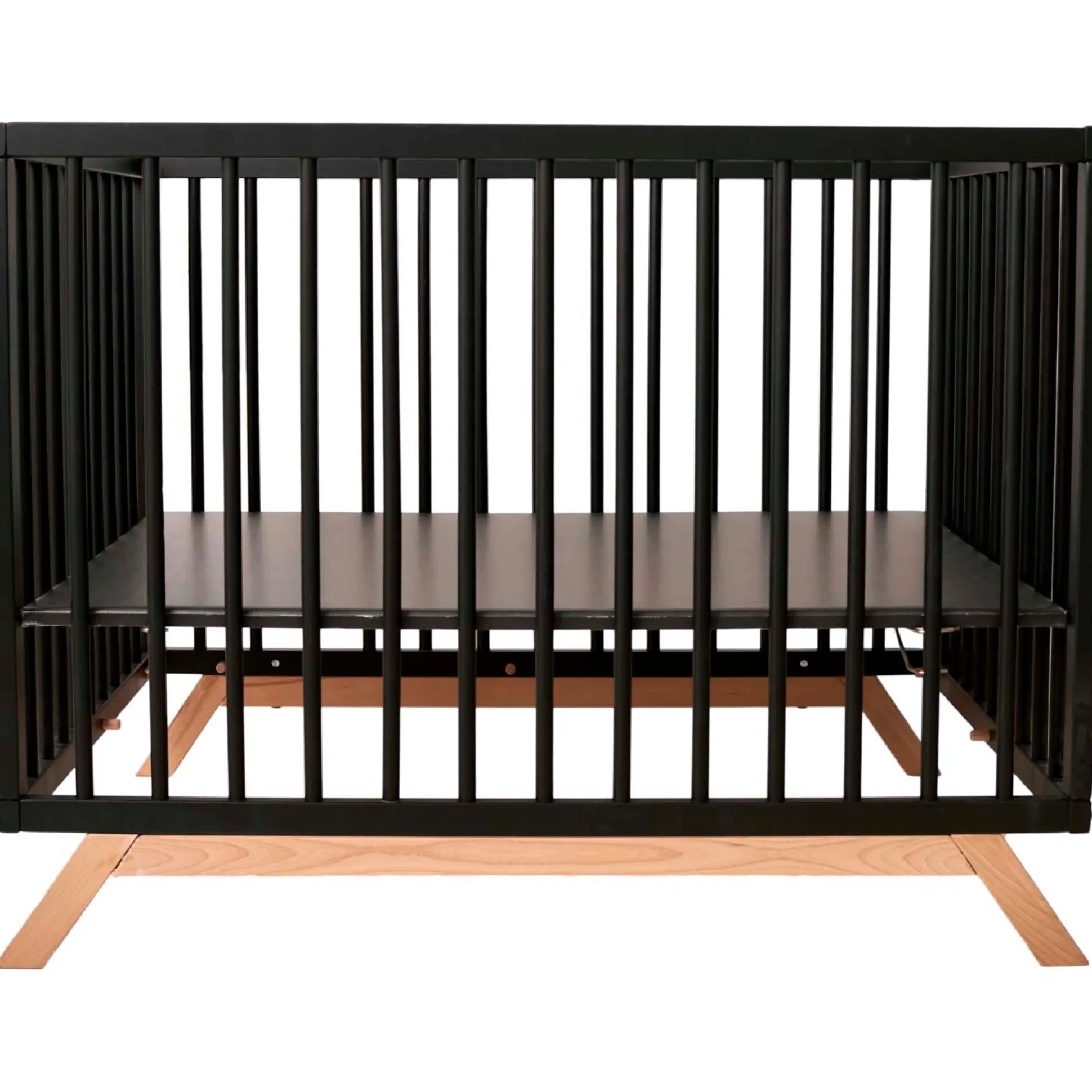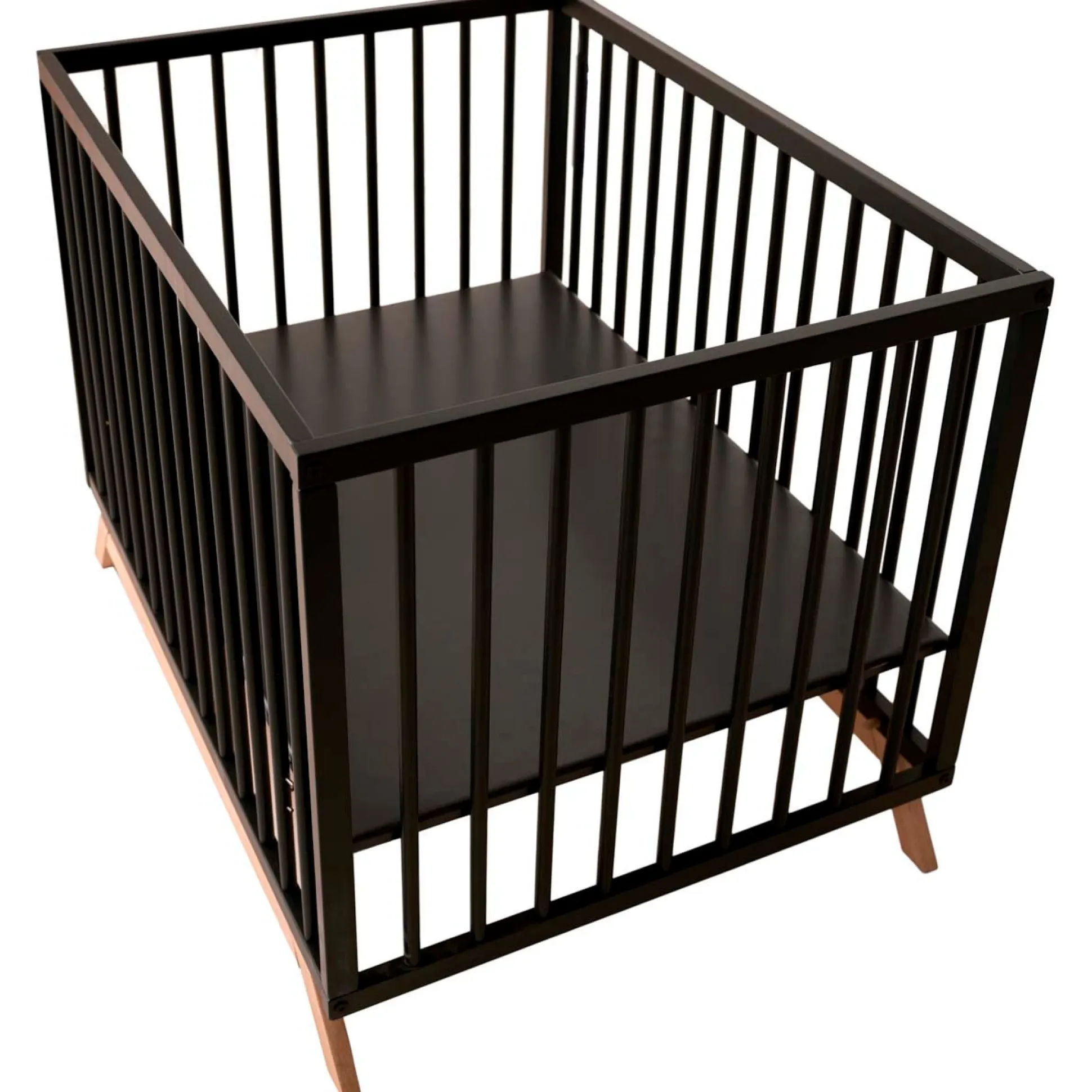 Deze stoere box van Prénatal in de kleur zwart is helemaal on trend! De box heeft ronde spijlen en schuine poten en kan worden versteld naar drie verschillende hoogtes, zo groeit deze box mee met jouw kindje. De bodemplaat van deze box heeft een afmeting van 95×70 en de buitenmaat is 100x75cm. De hoogte van de box is 67cm. Aanbevolen wordt om een box altijd met een boxkleed en boxmatras te gebruiken. De Prénatal boxkleden zijn perfect van formaat voor deze box waardoor de box nog comfortabeler wordt en ook aantrekkelijker oogt. Gemaakt van beukenhout en in Europa geproduceerd. De bodemplaat is bedekt met 6mm zacht schuim en afgewerkt met PVC folie.
