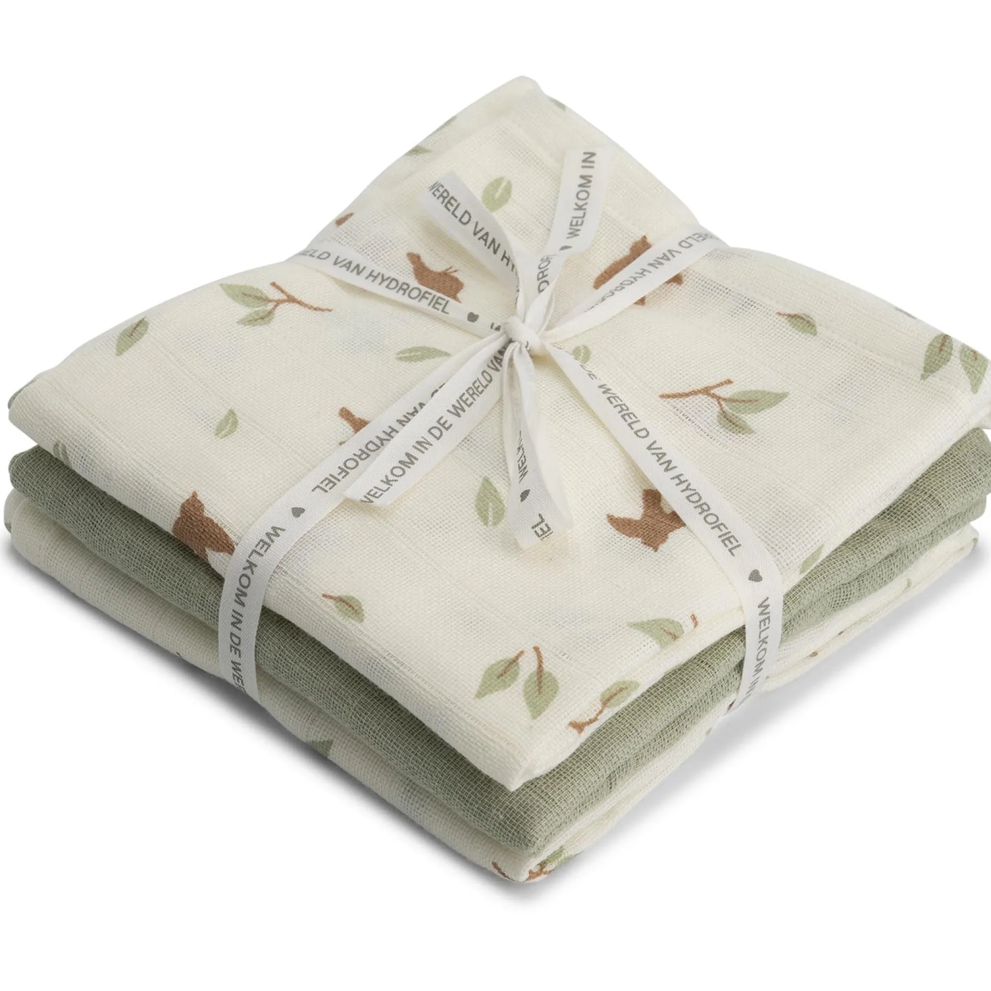 Deze Prénatal hydrofiele doeken zijn van 100% biologisch katoen zeer gelijkmatig gesponnen garen gemaakt en daardoor over de gehele oppervlakte even dik en absorberend. De doeken, ook wel luiers genoemd, helpen je bij het afdrogen en verzorgen van het tere babyhuidje, maar je kan het ook gebruiken als doekje of bijvoorbeeld onderlegger in je kinderwagen of bedje. De hydrofiel doeken zijn 60 x 60 cm en verpakt per 3 stuks, met een mooi lintje er omheen. Verkrijgbaar in verschillende pakketjes.