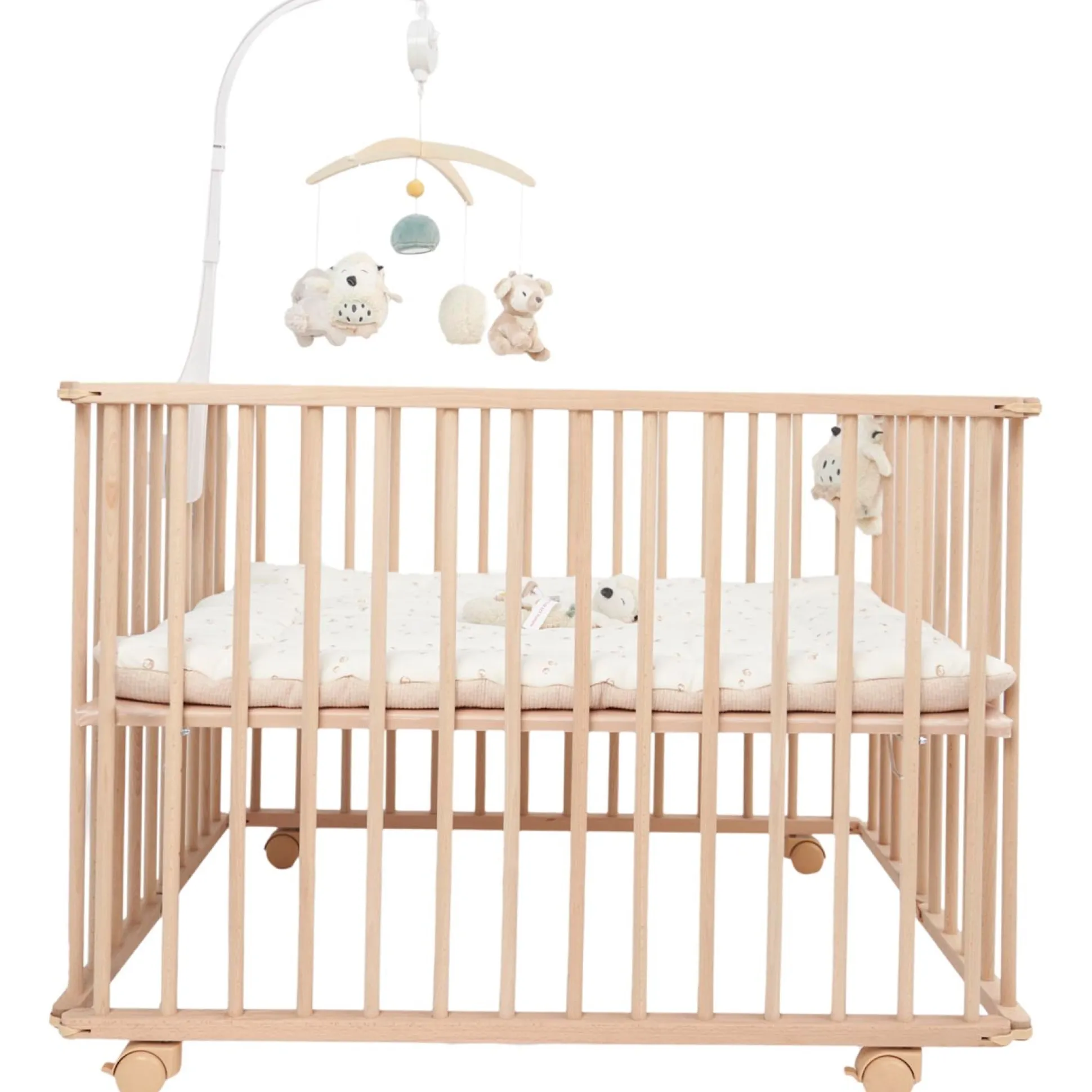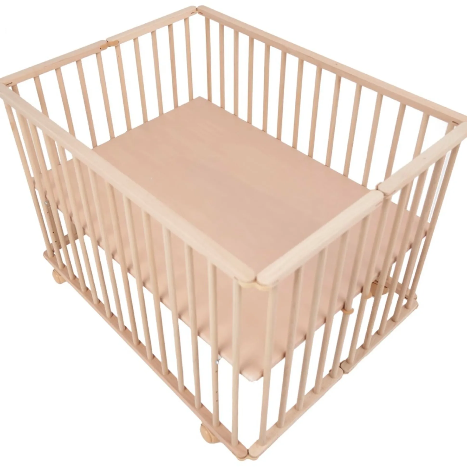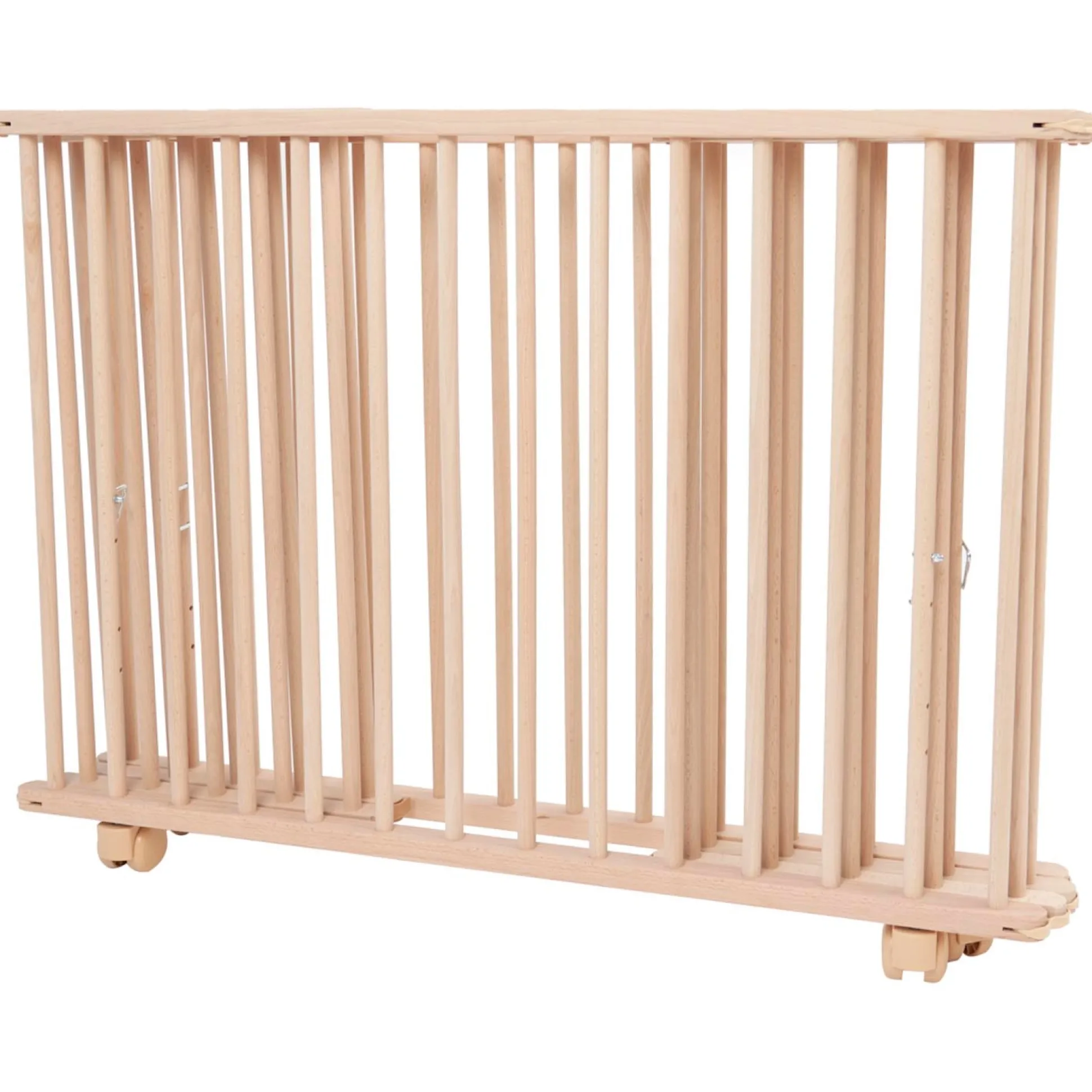 De Prénatal inklapbare box Edin is erg handig wanneer je niet al te groot woont. De box is gemakkelijk in te klappen tot een plat pakket waardoor hij niet in de weg staat wanneer je de box niet gebruikt. De bodem van de box is gemakkelijk op drie verschillende hoogtes te verstellen waardoor je de box langer kan gebruiken. Daarnaast bevat de box handige wieltjes waarmee de box gemakkelijk te verplaatsen is. De wieltjes kunnen ook vastgezet worden. Ideaal voor bij opa en oma thuis! Voor optimaal comfort wordt aangeraden een boxkleed en een boxmatras te gebruiken. Afmetingen buitenmaat: 75 x 100 cm, binnenmaat: 70 x 95 cm. Hoogte: 71cm (met wielen) en 66cm (zonder wielen). De spijlen van deze box zijn rond. Gemaakt van beukenhout en in Europa geproduceerd.