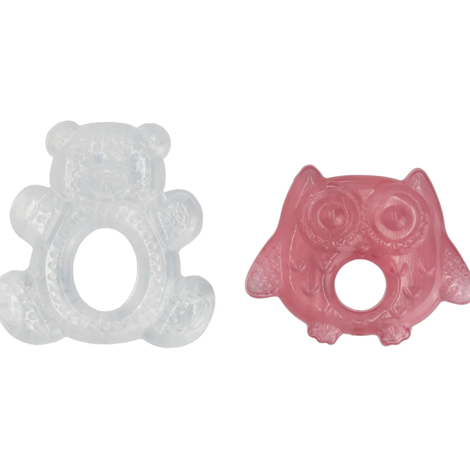 De Prénatal bijtring is vervaardigd met duurzame materialen. Het zachte materiaal is ideaal voor uw baby’s bijtreflex tijdens het tandjes krijgen. De bijtring zorgt ervoor dat, als deze in de koelkast gekoeld is, het tandvlees bij doorkomende tandjes wat minder pijnlijk is. De bijtring is zo ontworpen dat je kleintje deze makkelijk kan vastpakken. De bijtring is gevuld met gesteriliseerd water en daardoor ongevaarlijk. Inhoud: 2 stuks, 1 roze bijtring in de vorm van een uil en 1 witte bijtring in de vorm van een beer. Let op: leg de bijtring niet in de vriezer, maar koel deze alleen in de koelkast. De bijtring niet uitkoken, in de stoomsterilisator reinigen of in de magnetron plaatsen. Vaatwasmachine bestendig.