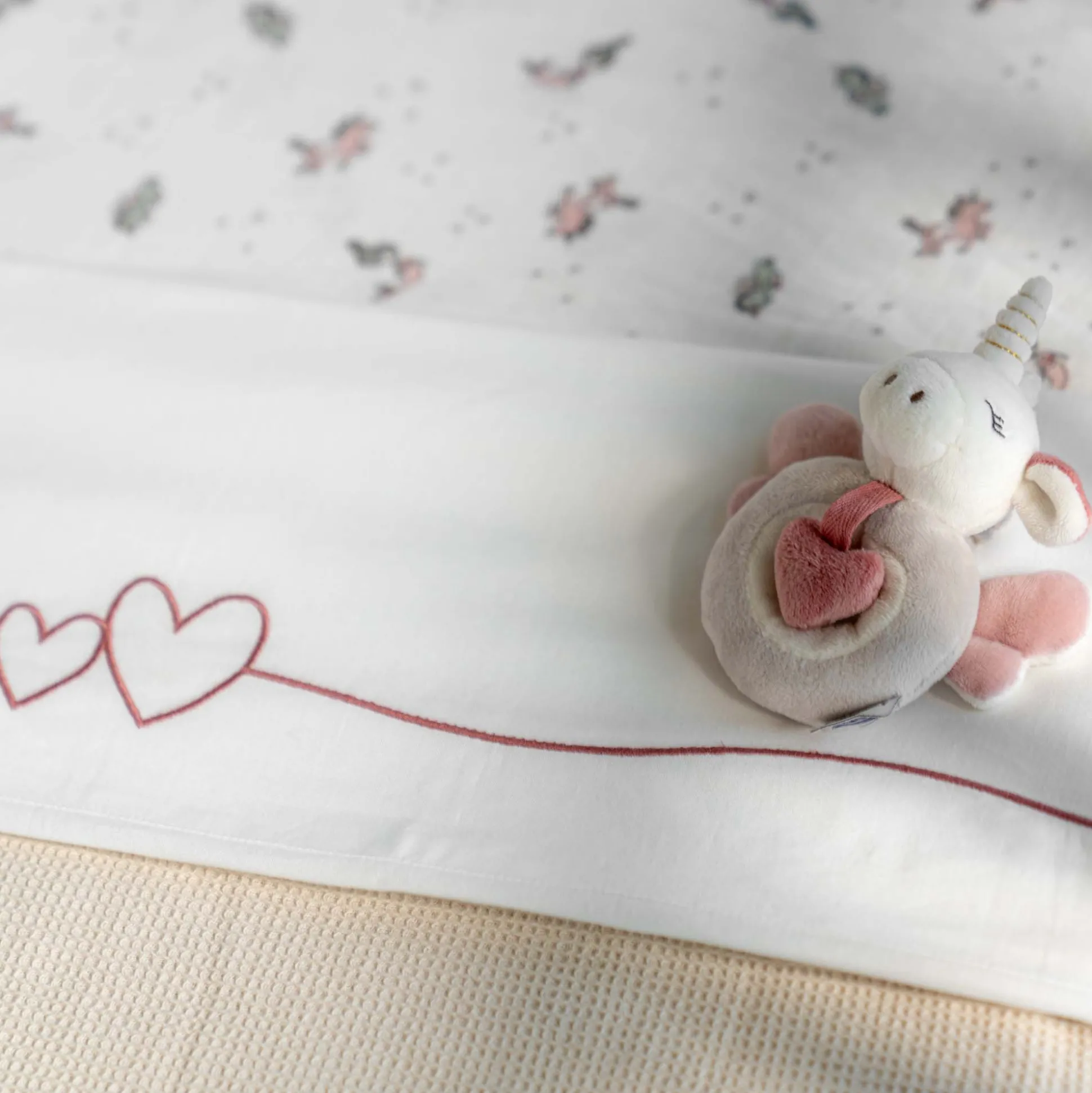 Dit lieve Prénatal ledikantlaken is gemaakt van biologisch katoen en komt uit het Fairytale thema. Het lakentje is wit van kleur en heeft een omslag met geborduurd hartje. Het ledikantlaken is perfect te combineren met dekens uit onze Prénatal collectie. Afmeting 100x150cm. Wasvoorschrift: wassen op 40 graden met gelijke kleuren. In het Fairytale thema van Prénatal zijn meerdere items verkrijgbaar, leuk om te combineren in de babykamer!
