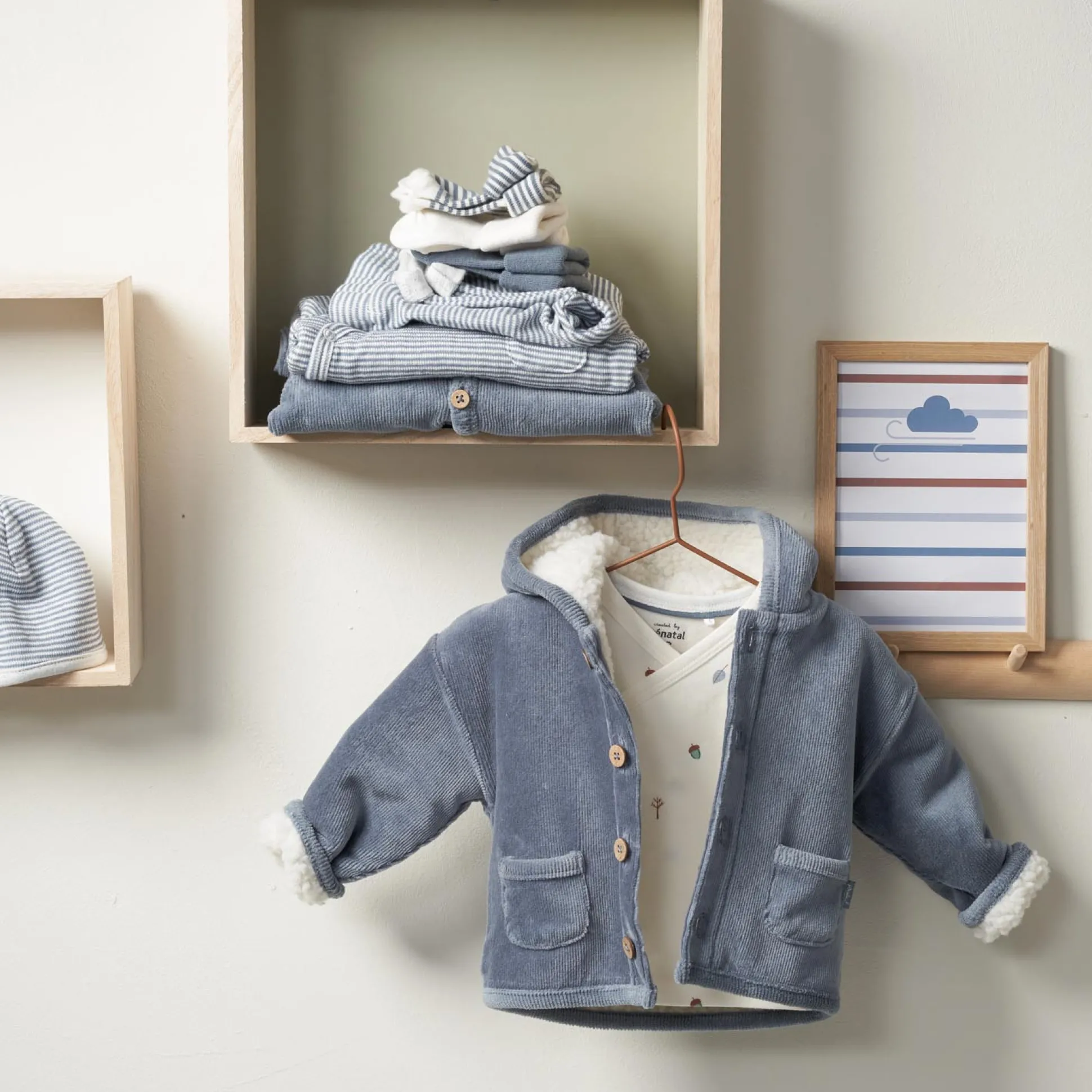 Deze Prénatal newborn jas is gemaakt van een fijne rib velours kwaliteit. De jas is voorzien van een knoopsluiting aan de voorzijde van de jas, waardoor de jas gemakkelijk aan en uitgetrokken kan worden bij je kleintje. Door de dikke teddy voering is de jas ideaal voor een koude winter. De jas is goed te combineren met de andere items uit de Limited collectie bij Prénatal. Verkrijgbaar in met een mooie all over print en in een blauwe kleur, in de maten 50 t/m 68. Kwaliteit: buitenstof: 60% biologisch katoen, 38% polyester en 2% elastaan, voering: 100% polyester. Binnenstebuiten wassen op 40 graden met gelijke kleuren.