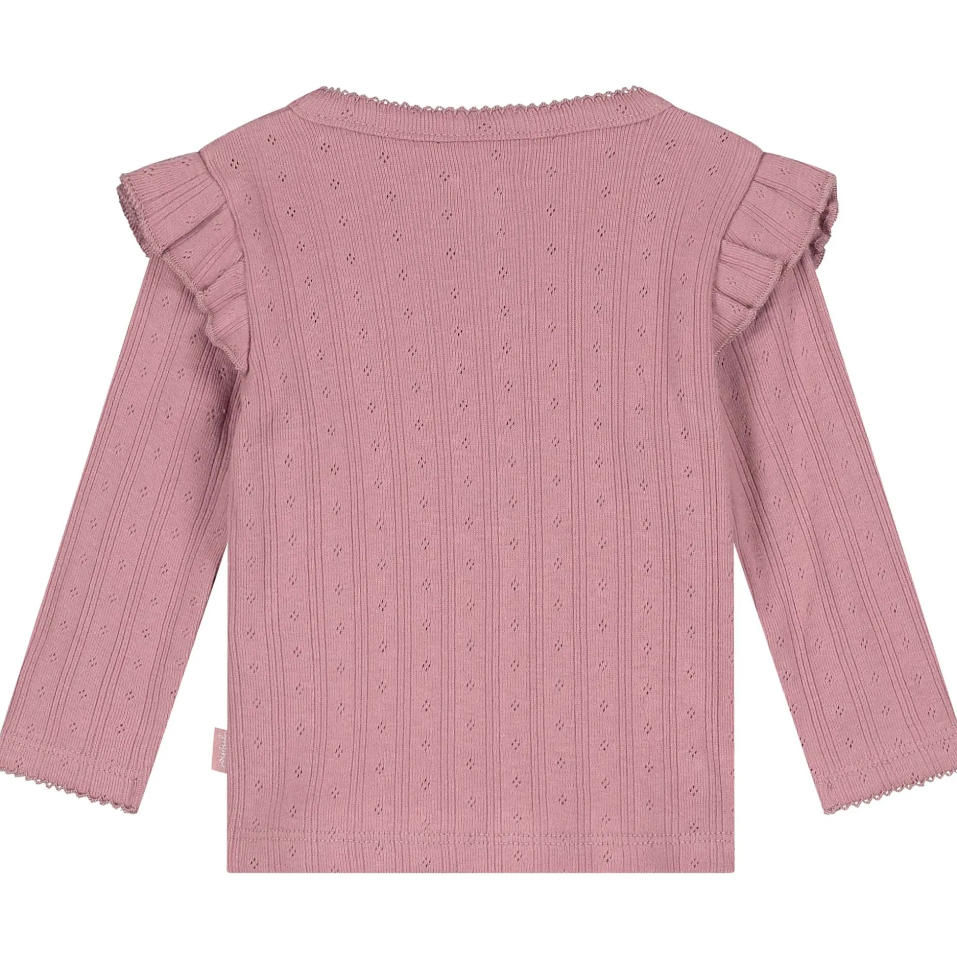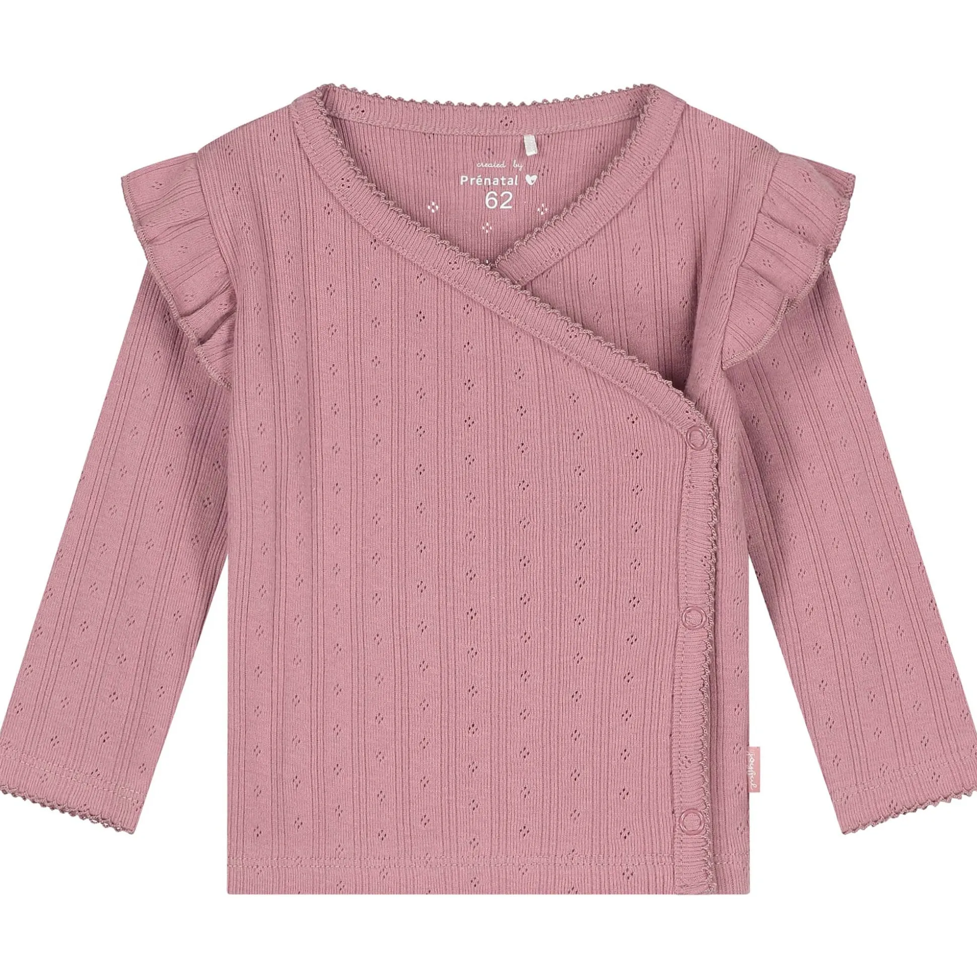 Prénatal newborn overslagshirt ajour lange mouwen effen roze