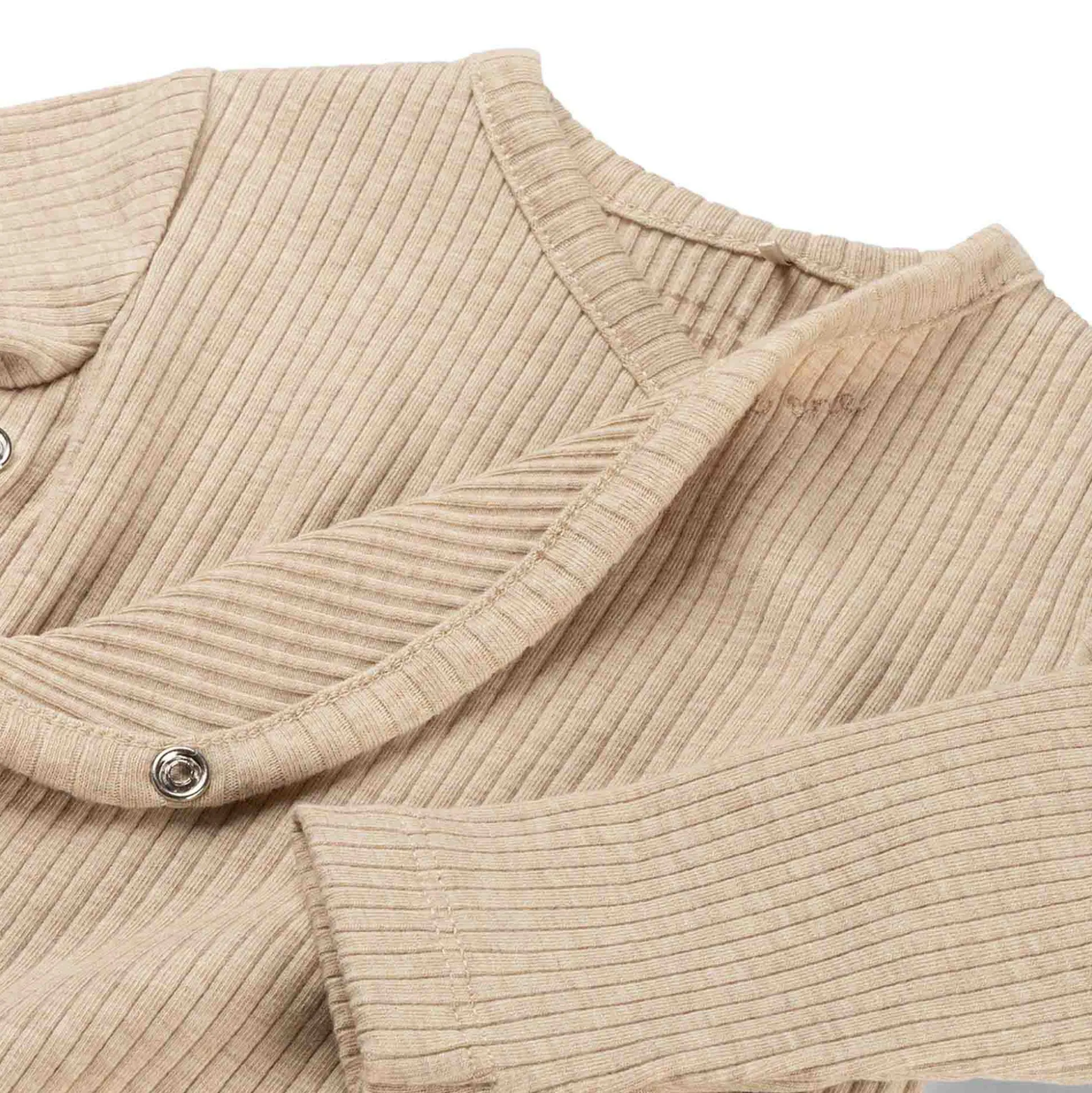 Prénatal newborn romper rib lange mouwen effen beige