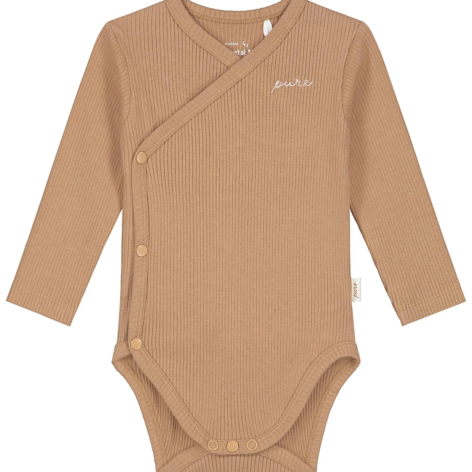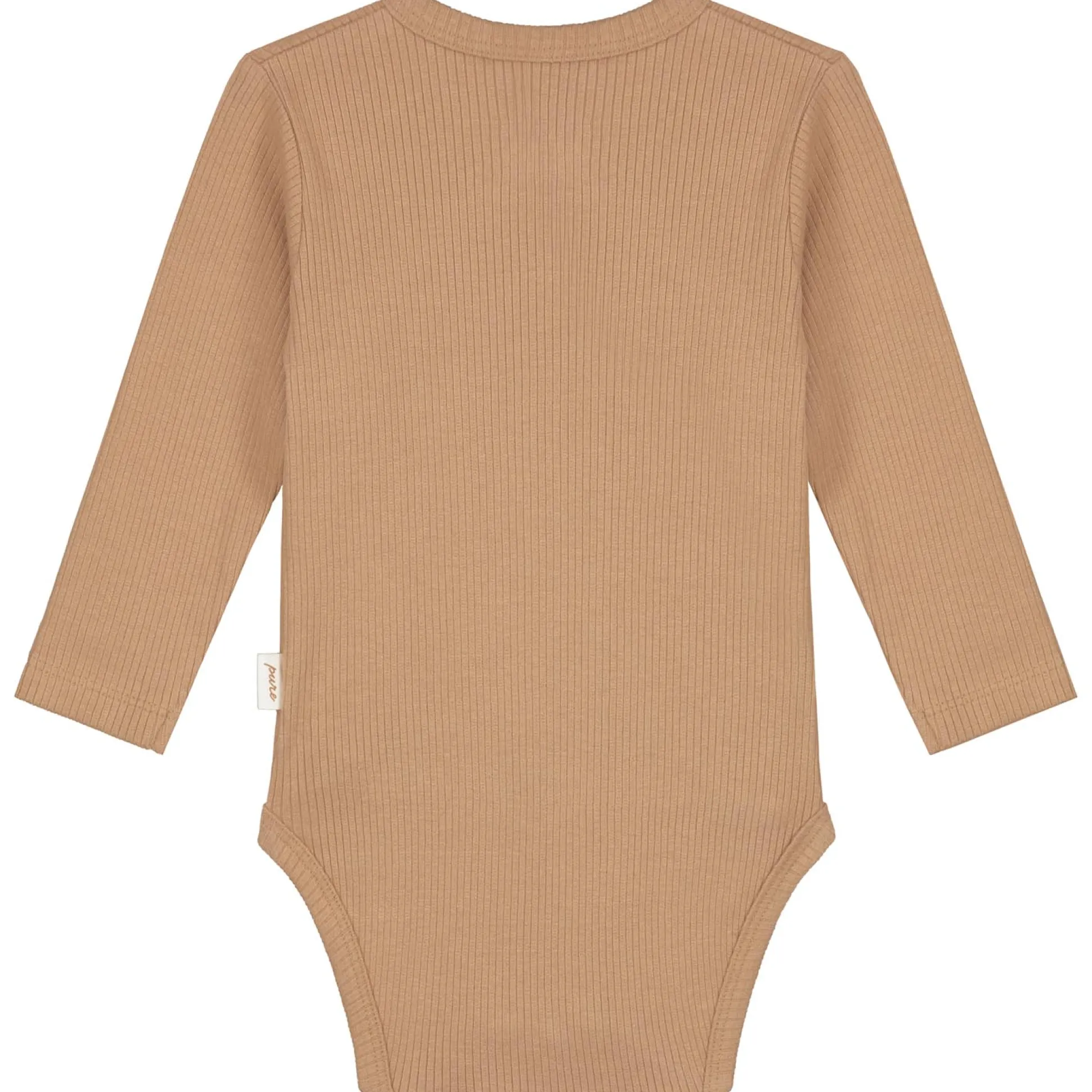 Prénatal newborn romper rib Pure lange mouwen effen bruin