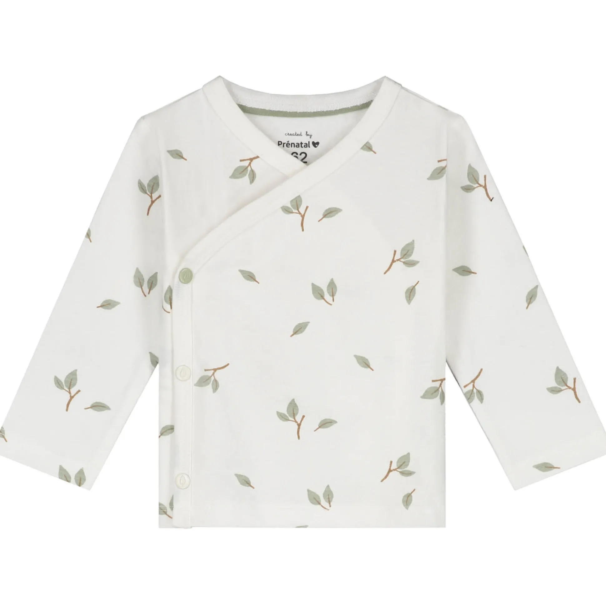 Prénatal Pure overslagshirt. Dit shirt is gemaakt van een fijne katoenen kwaliteit. Het shirt is gebroken wit van kleur en heeft een fijne all over print van blaadjes en vogels. Op de borst is het tekstje Pure geborduurd. Door de overslagsluiting is het shirt gemakkelijk aan en uit te trekken bij je kleintje. Het overslagshirt is goed te combineren met de andere items uit de Pure collectie bij Prénatal. Verkrijgbaar in maat 44 t/m 68. Kwaliteit: 100% biologisch katoen. Binnenstebuiten wassen op 40 graden met gelijke kleuren.
