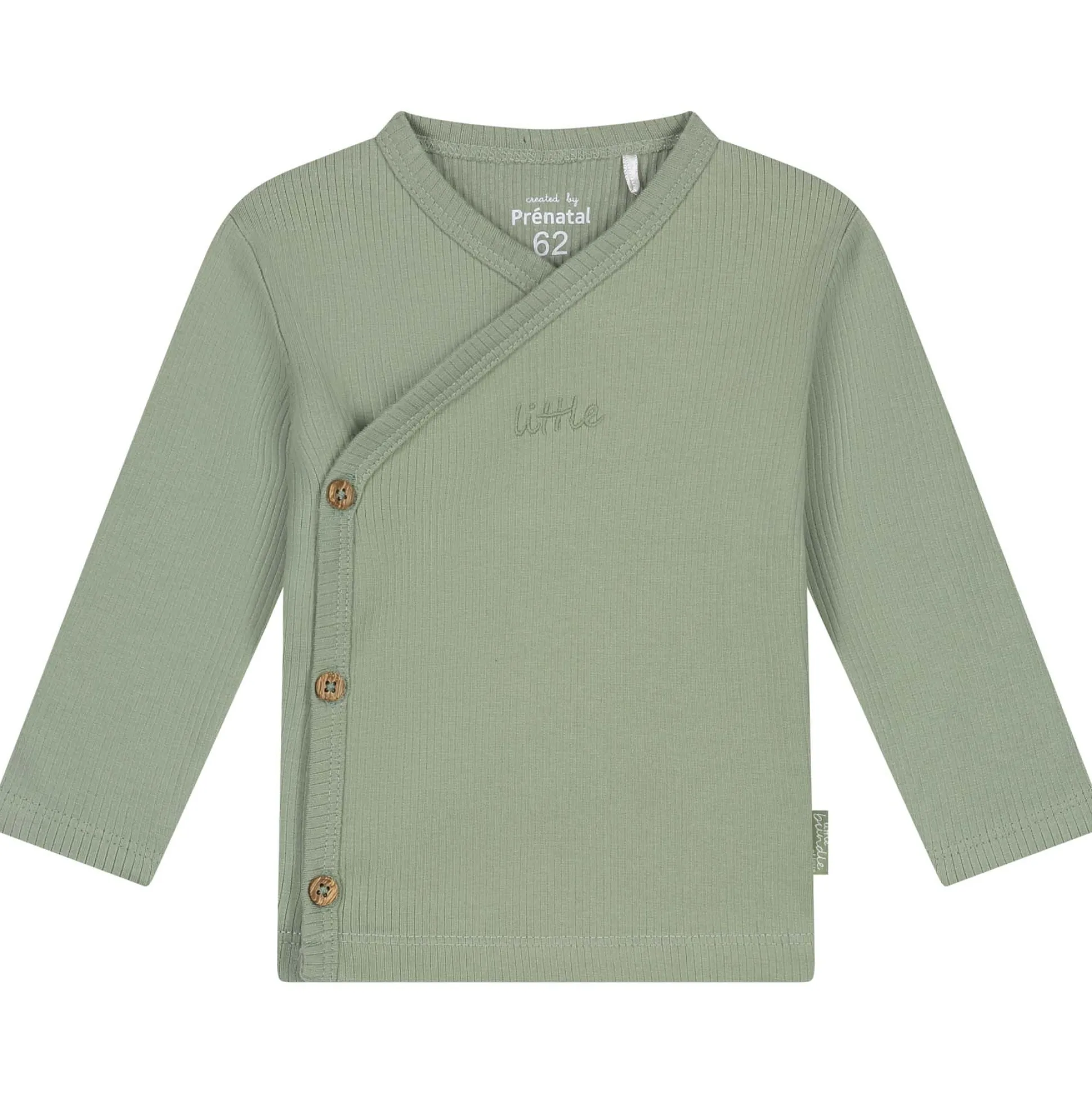 Dit Prénatal shirt is gemaakt van een fijne katoenen rib kwaliteit. het shirt heeft lange mouwen, een embroidery op de borst en een handige overslag waardoor je je kleintje gemakkelijk aan en uit kan kleden. Dit shirt is verkrijgbaar in verschillende kleuren en goed te combineren met de andere items uit de Little Bundle Of Love collectie bij Prénatal. Verkrijgbaar in de maten 44 t/m 68. Materiaal: 96% biologisch katoen en 4% elastaan. Wasvoorschrift: binnenstebuiten wassen op 40 graden met gelijke kleuren.